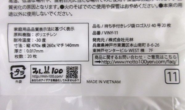 内 容 ■持ち手付レジ袋 ロゴ入り ショッピングバッグ 40号(VINY-11)