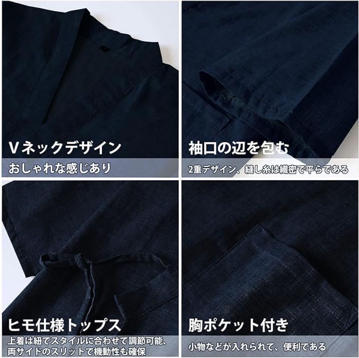 Product name: 新品甚平 部屋着 上下セット M作務衣 じんべい メンズタグ付き春夏入所介護ネイビー