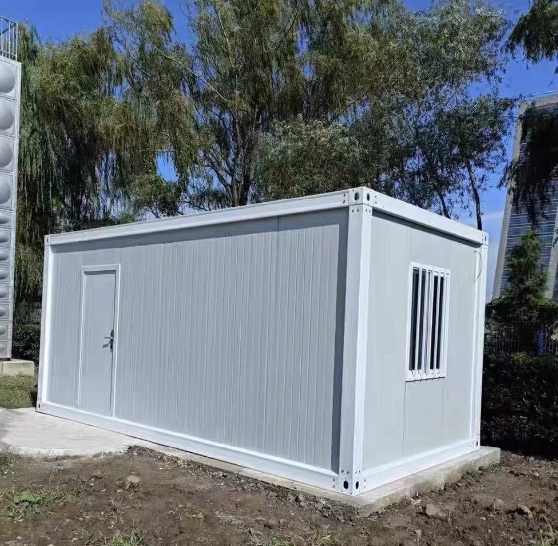コンテナタイプ プレハブ スーパーハウス/店舗/事務所/ガレージ/倉庫/自由組立式2.55m×4.44m×2.8m 窓2点、ドア1点 断熱材ロックウール板