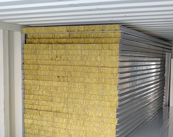 壁パネルにはロックウール材料になります、断熱材が50ミリ厚で入っています。天井にはグラスウール、床板は耐火マグネシウム合板を採用しております。ボックスの1つの重量は約1000kg
