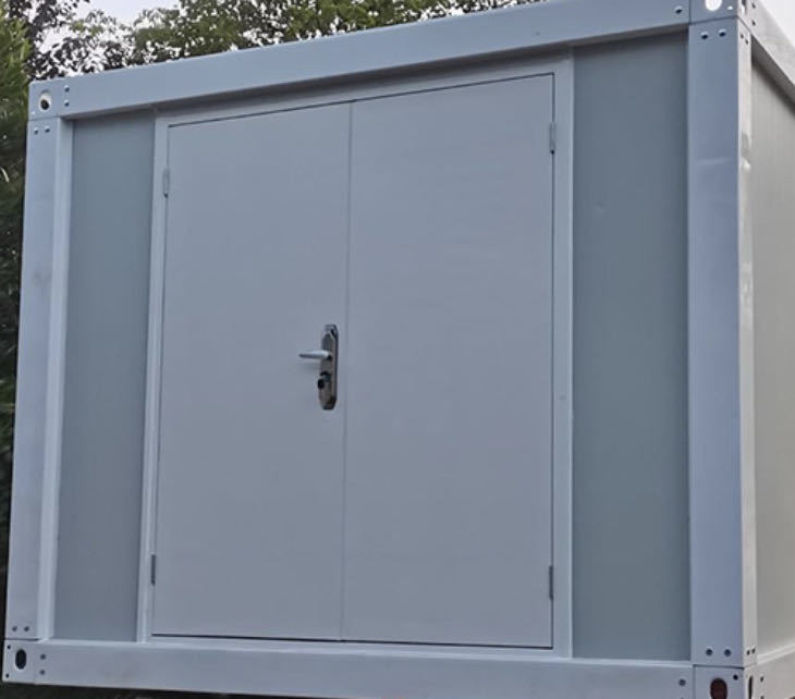組み立ては鉄骨チャンネルと連結ジョイントで骨組みを組み立て、壁、窓、ドア、床、天井、屋根と組み立てます。