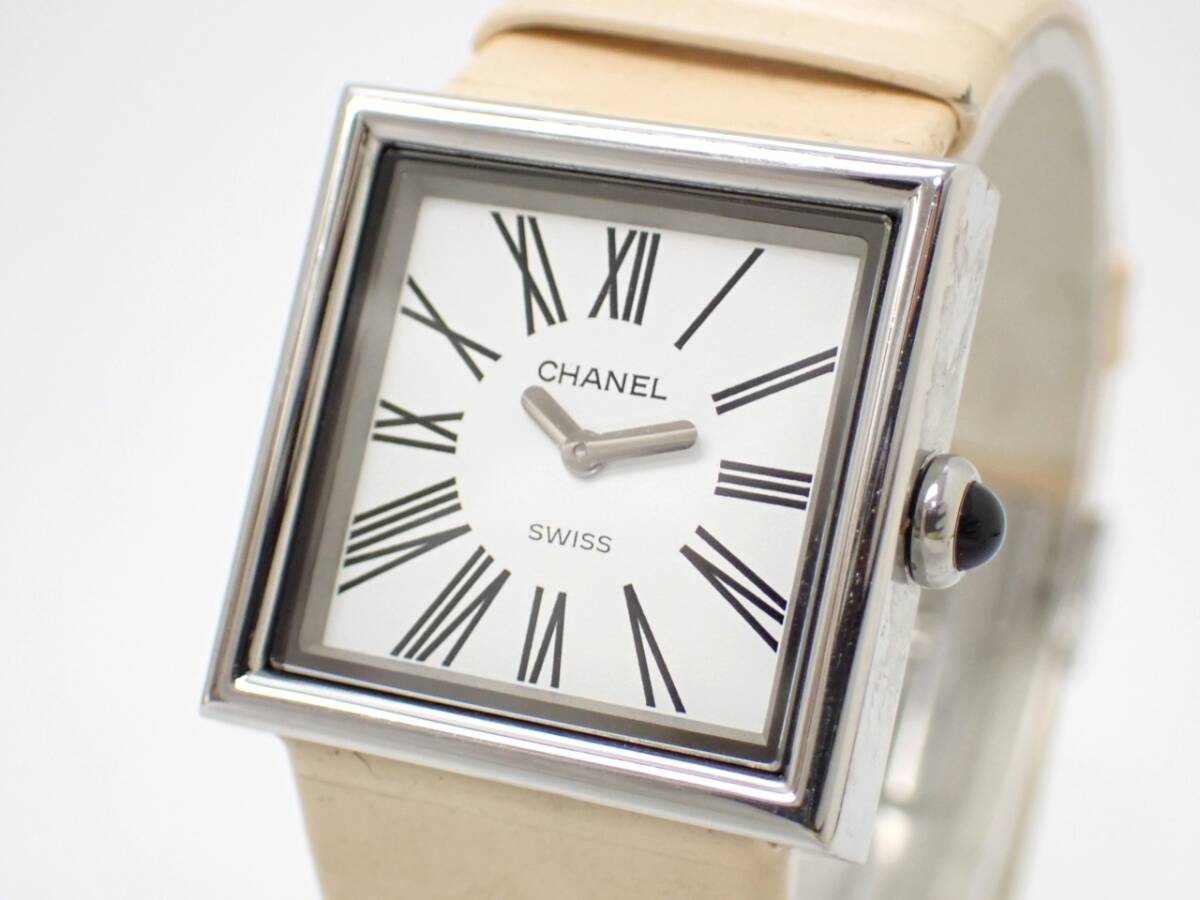 CHANEL シャネル QZ レディース腕時計 マドモアゼル B.H.19166 OH済み 白文字盤 スクエア 純正ベルト