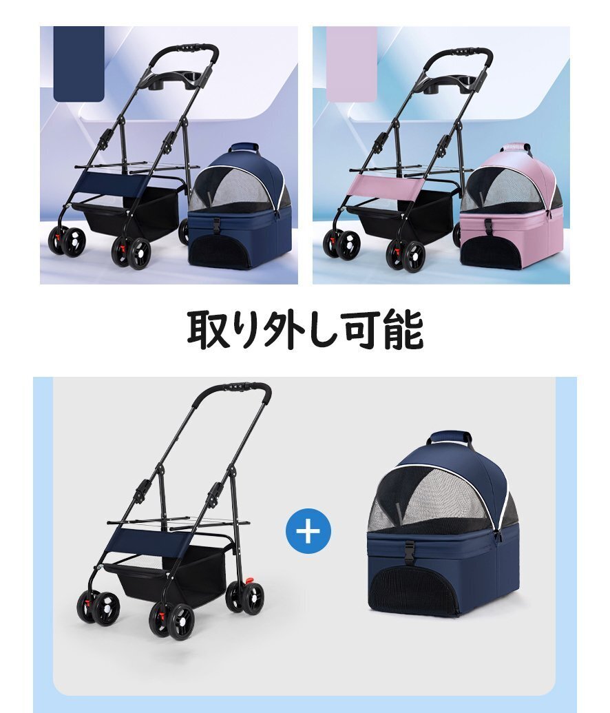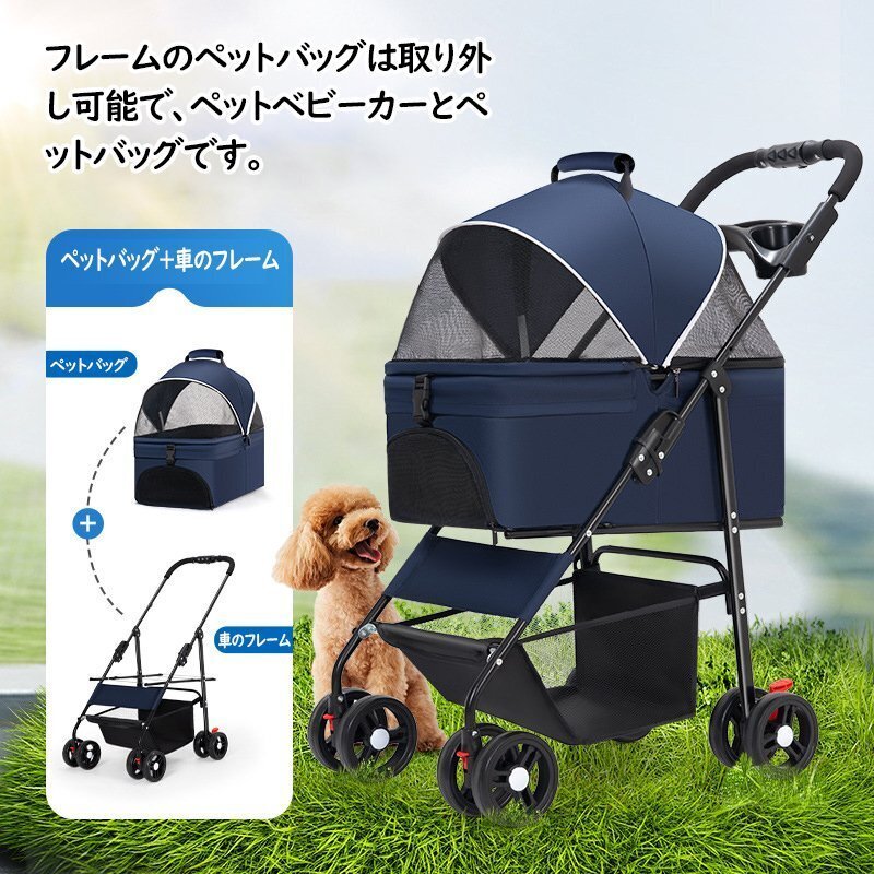 ペットカート 折りたたみ 軽量 分離 4輪 カップホルダー ワンタッチ収納 耐荷重15kg 中型犬小型犬 介護用 散歩用 犬猫兼用カート ブラック