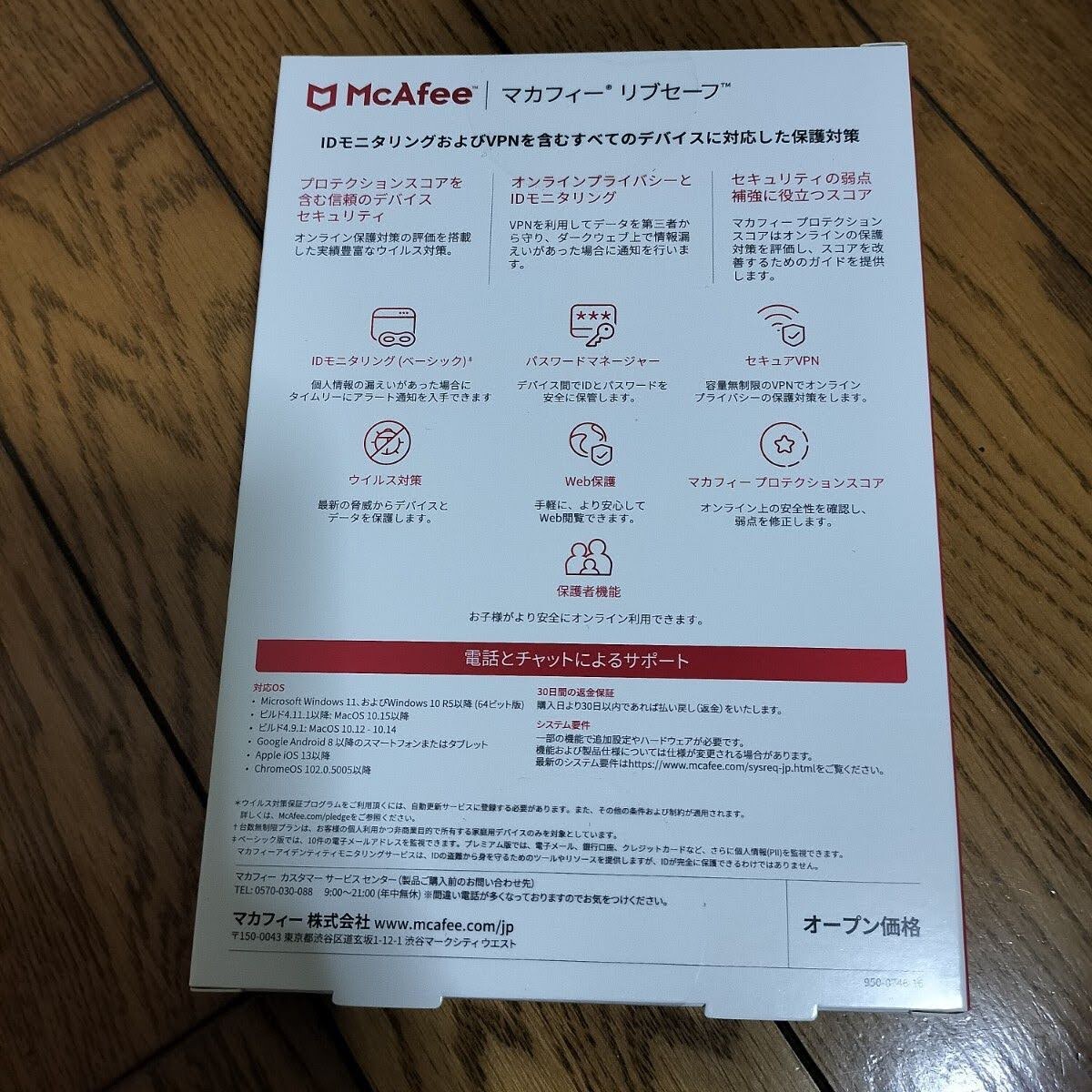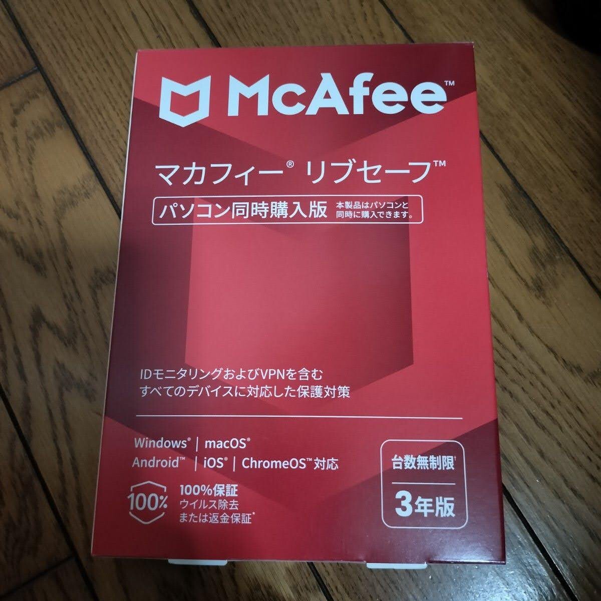 マカフィー リブセーフ パソコン同時購入版 3年版です。