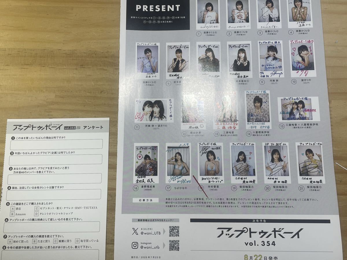 アップトゥボーイ vol.354 アンケートプレゼント 応募ハガキ 1枚 遠藤さくら 他 チェキ