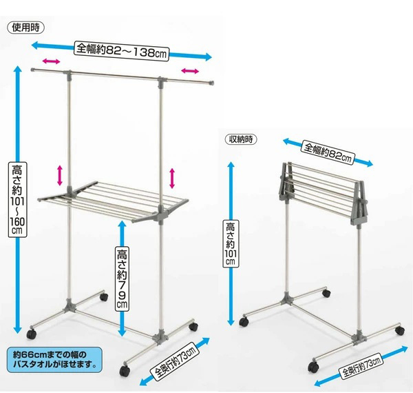 干し物に合わせてタテ・ヨコ伸縮自在。