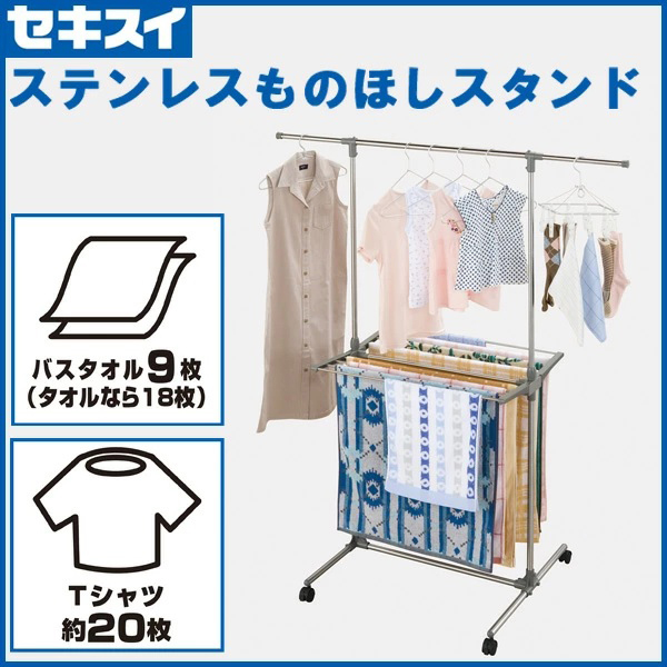 Product name: 送料300円(税込)■wt144■セキスイ ステンレスものほしスタンド キャスター付【シンオク】