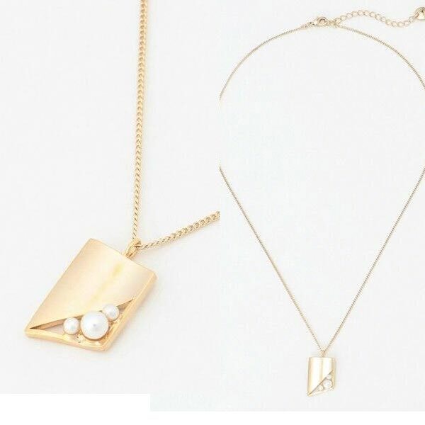 存在感のあるメタルプレートと上品なパールモチーフがポイントのワントップネックレスです。