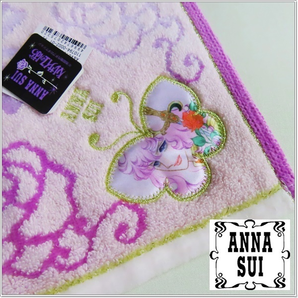 ◆ANNASUI アナスイ × ベルサイユのばら タオルハンカチ 未使用◆蝶 薄ピンク×パープル◆
