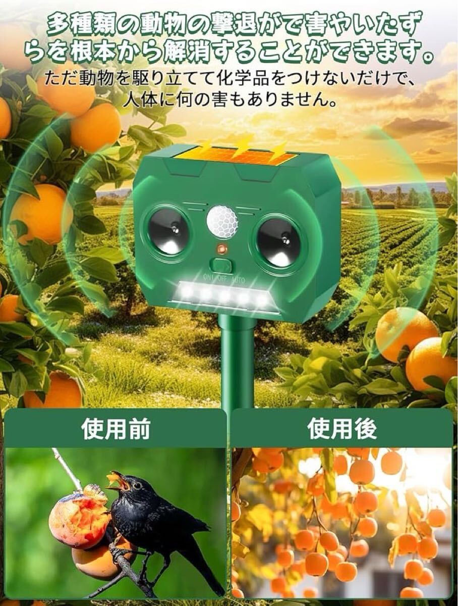 超音波+LEDフラッシュのダブル効果で強力撃退