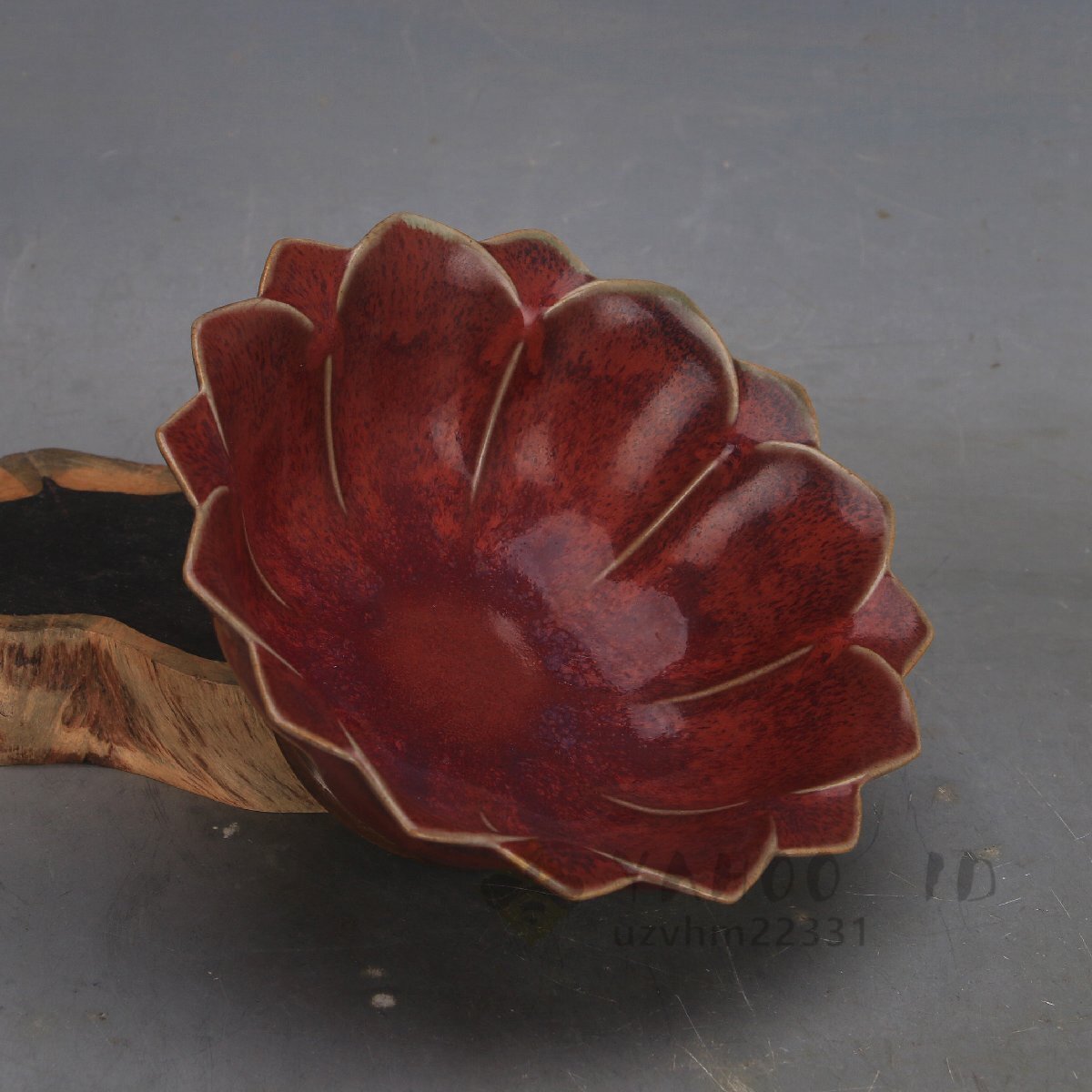 Product name: 宋 汝窯 赤釉 宋鈞窯赤釉原鉱料鉄胎蓮花碗 五大名窯鈞 鈞磁器 宋 賞皿置物 窯変釉 置物 鈞磁 盧鈞 装飾 磁器
