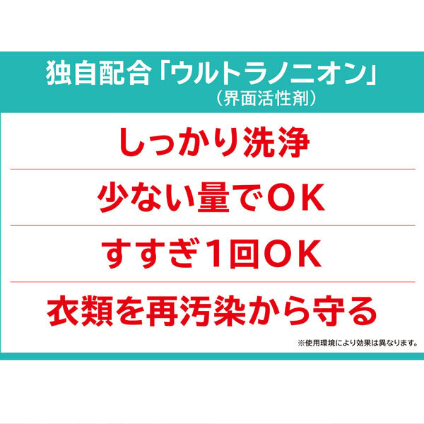 発酵の技術により洗浄力を強化する“善玉バイオ”と、独自開発の界面活性剤“ウルトラノニオン”を配合し、少ない量の界面活性剤でもしっかりと洗浄。