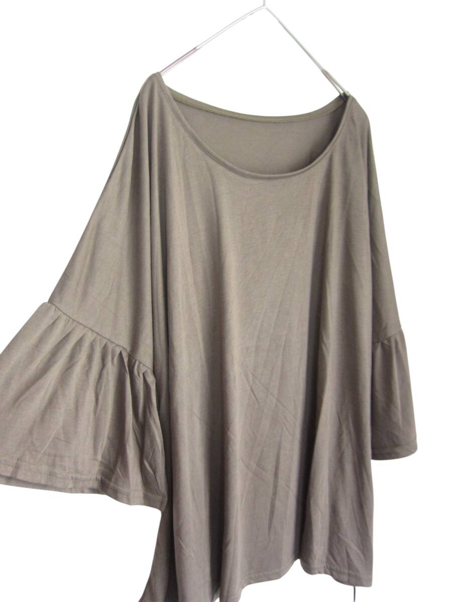 Product name: ★送料無料 S66 新品 【4L~5L】 カーキ とろみカットソー 7分袖 フレア 大きいサイズ ゆうパケットポスト