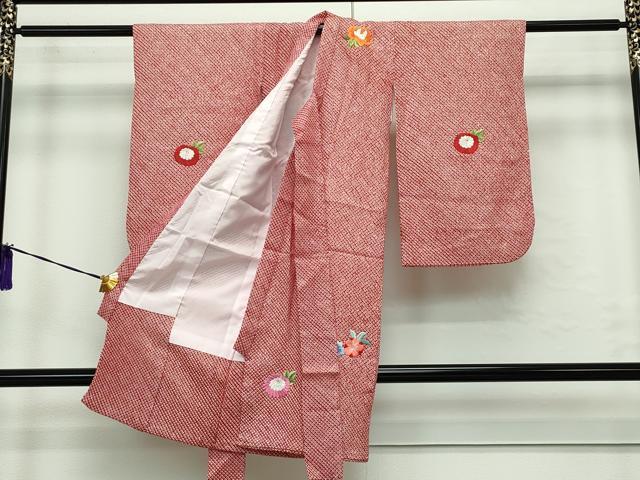平和屋本店■極上 七五三 女の子 3歳 祝着・襦袢セット 総絞り 総刺繍 花車文 金糸 半衿刺繍 逸品 CZAA1480s5