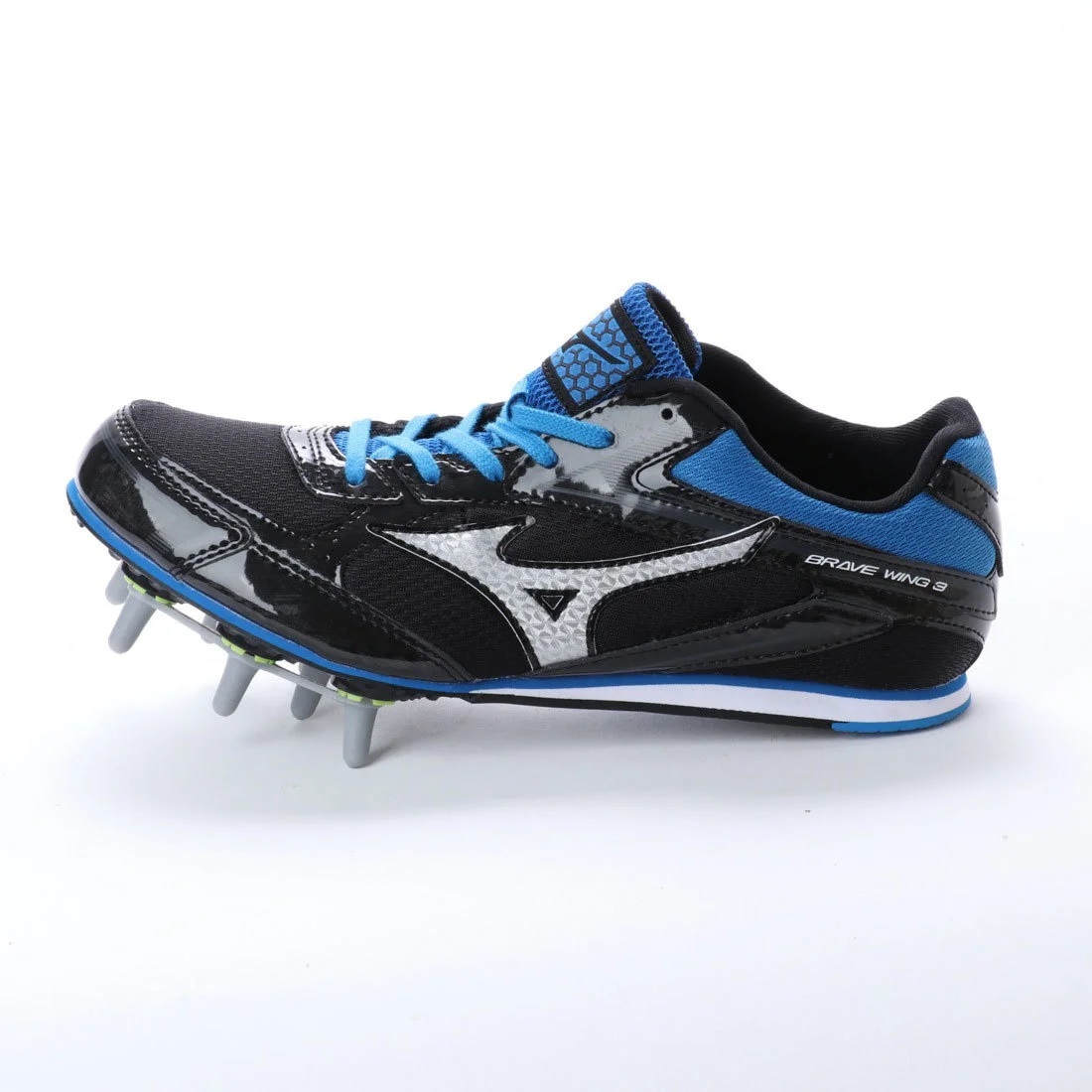 ミズノ 23.5cm ブレイブウィング3 ワイド 税込定価11000円 ブラック ブルー MIZUNO BRAVE WING3 WIDE 陸上スパイク 黒 青 ①