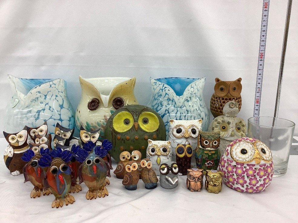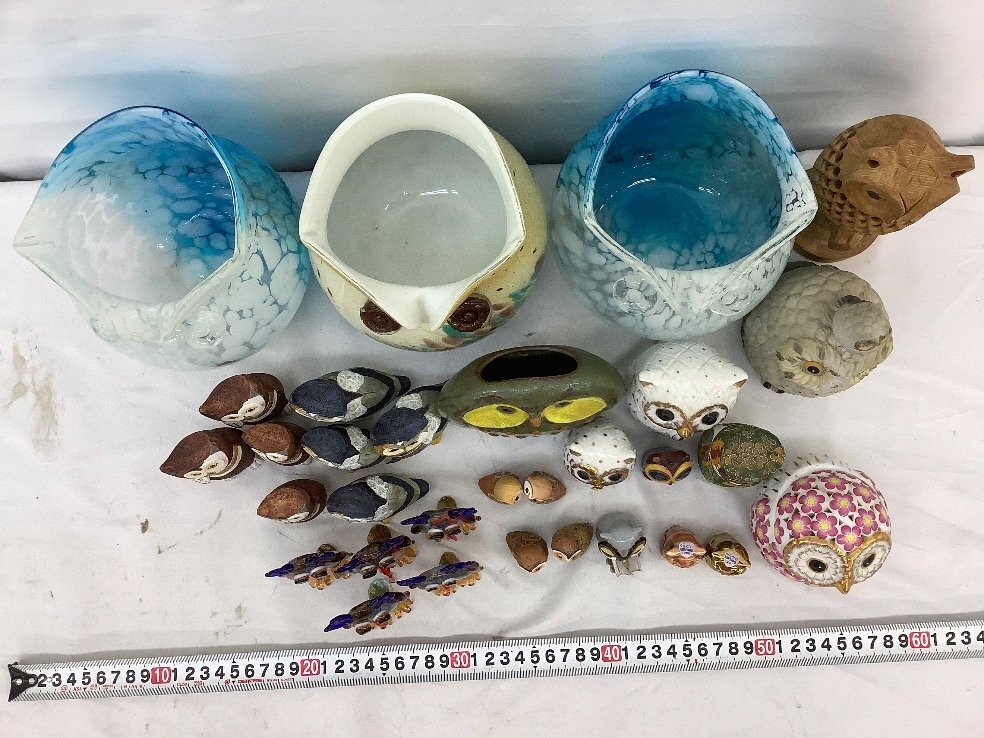 Product name: フクロウまとめ/置物/小物入れ/ポーチ/グラス/陶器/ガラス製品など材質さまざま 破損有/現状品/ACB 中古品