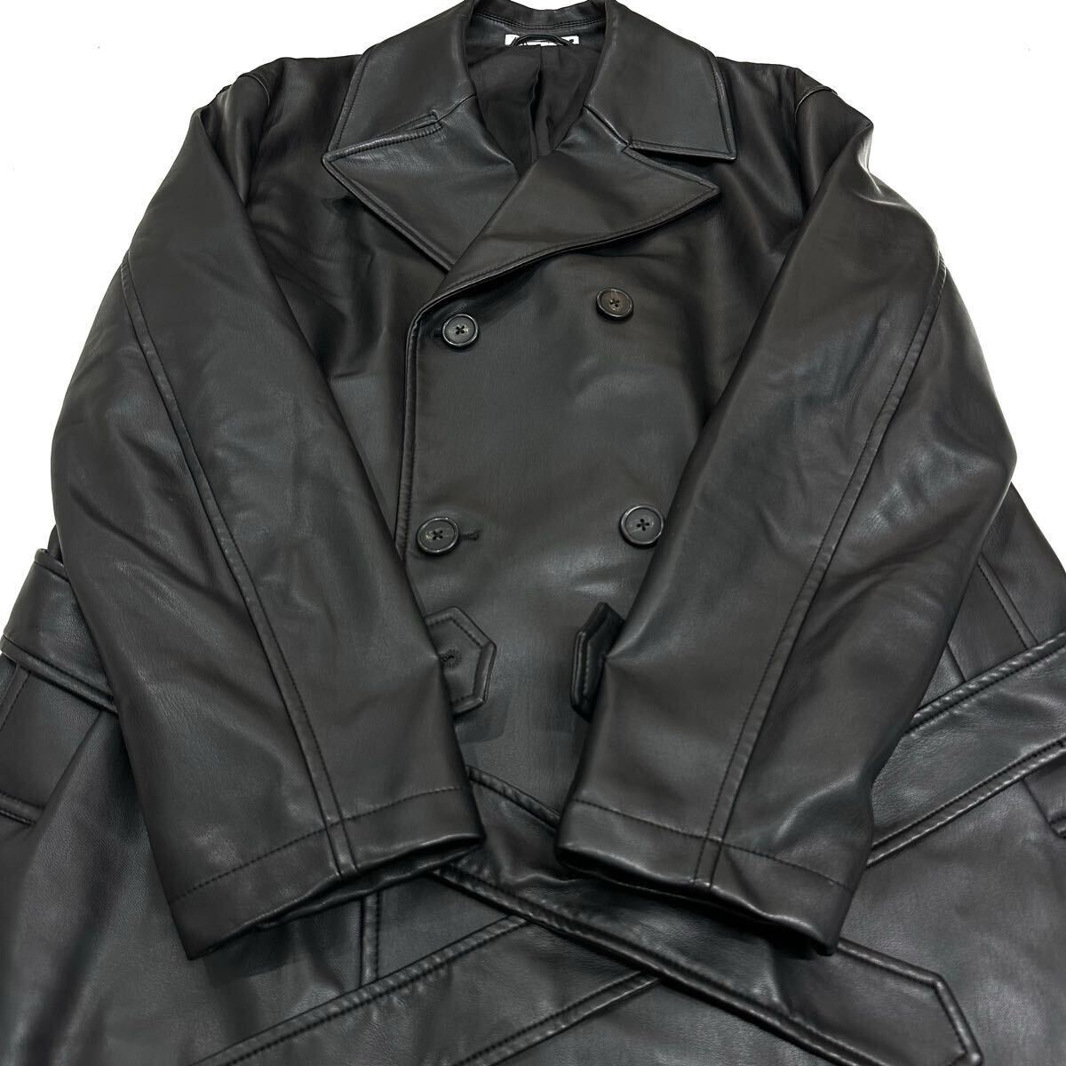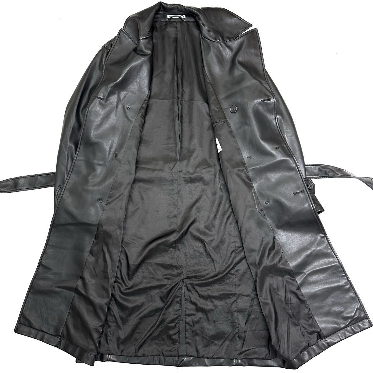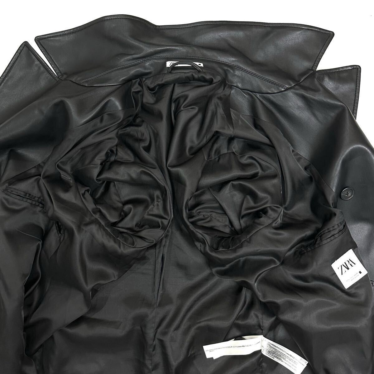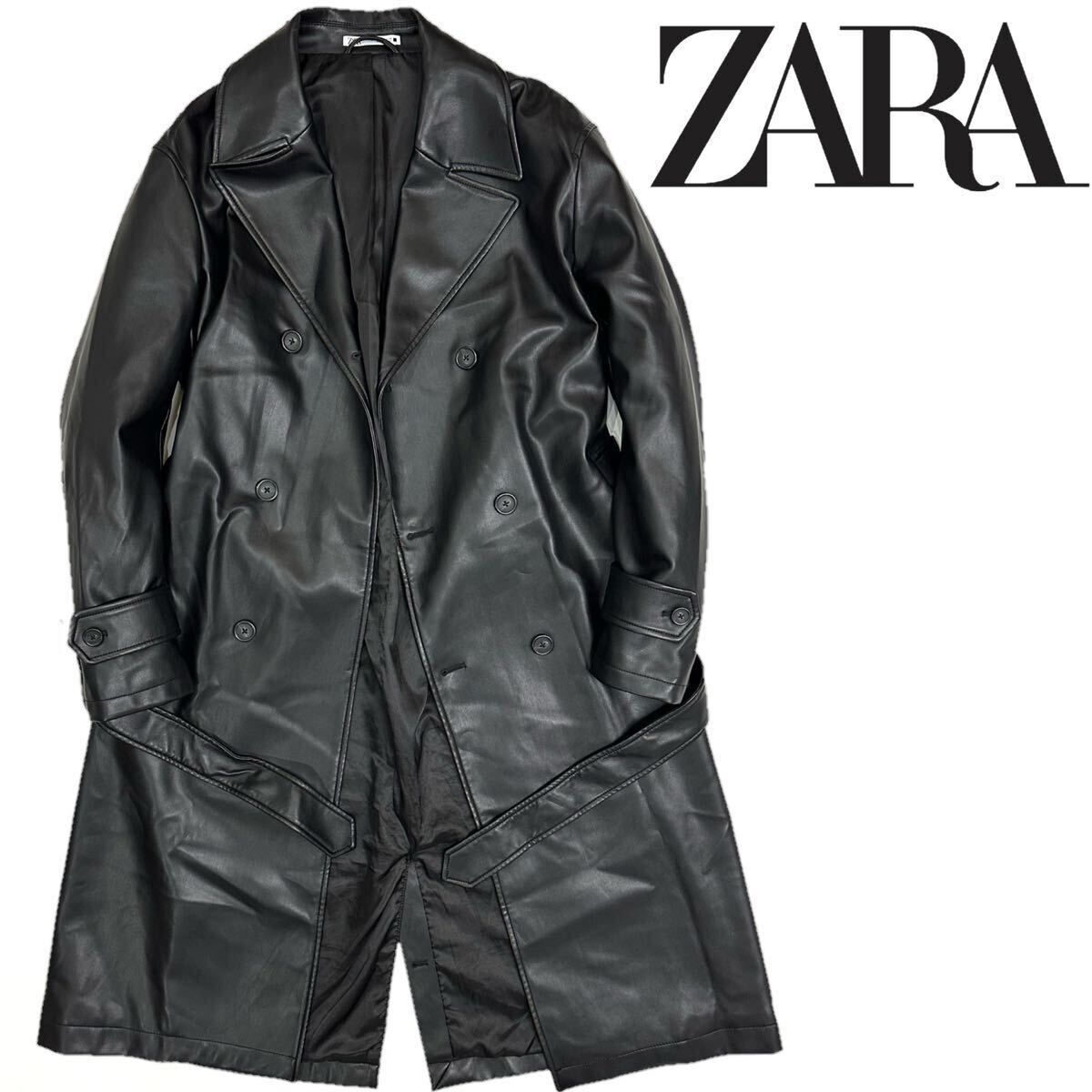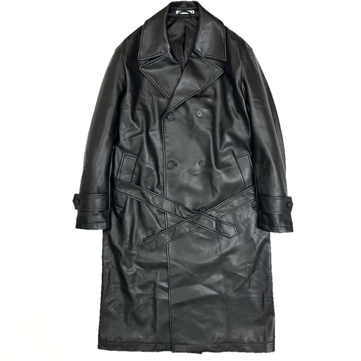 良品!!ZARA ザラ フェイク レザー ロング トレンチコート丈120㎝(L)ブラック 黒 メンズ アウター コート