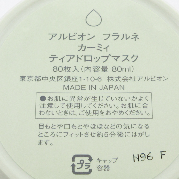 Product name: アルビオン フラルネ カーミィ ティアドロップ マスク 80枚入り 未開封 K14