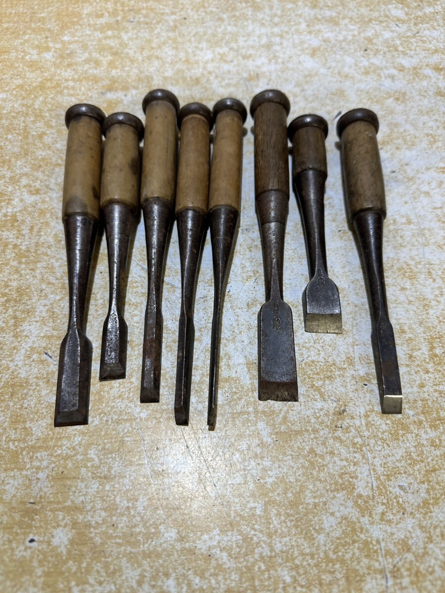 Product name: # 大工道具 鑿 のみ 刻印 匠近 義政 初寿 他 8本セット