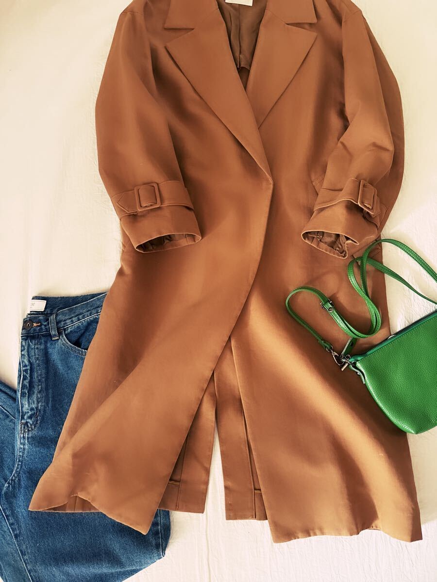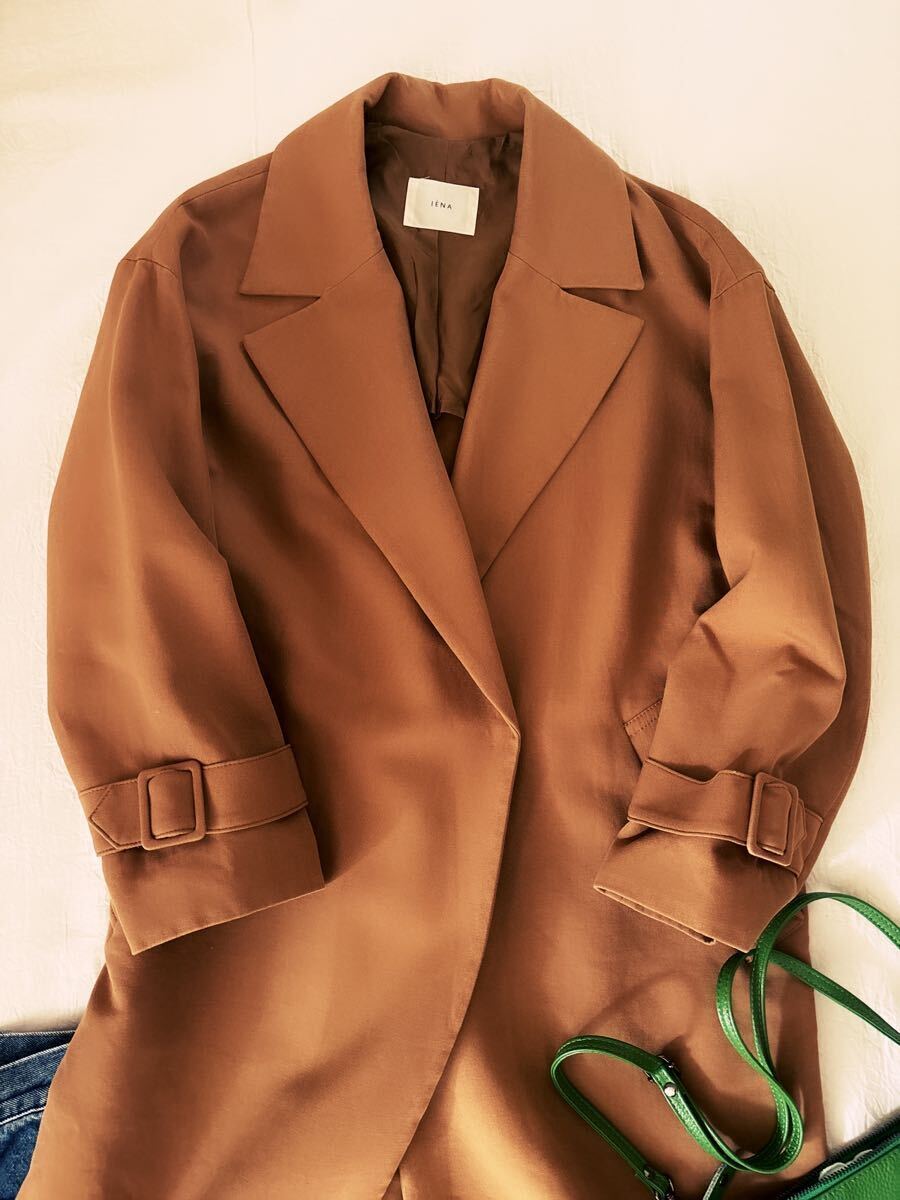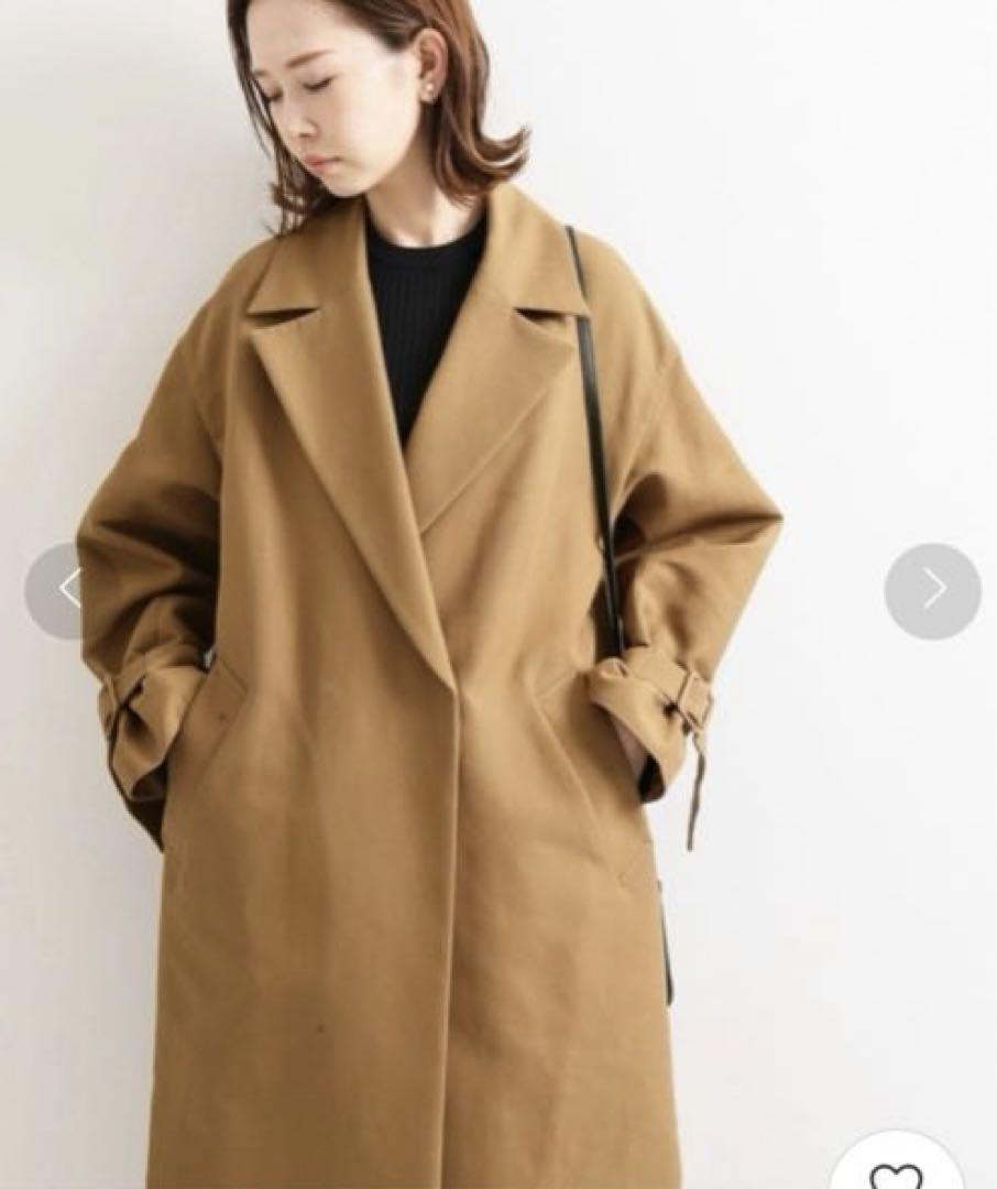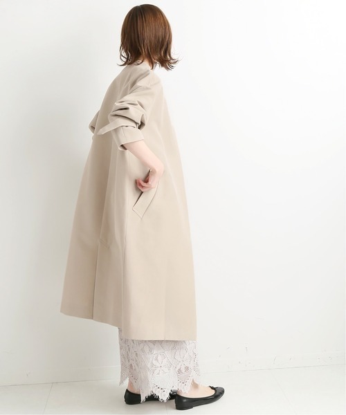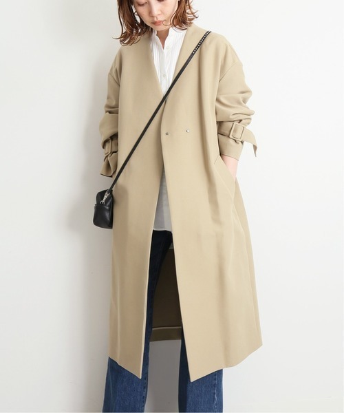 Product name: ∞ IENA イエナ コットン Wクロス ノーカラー Vネック コート ワイド ジャケット トレンチ キャメル 羽織り ∞