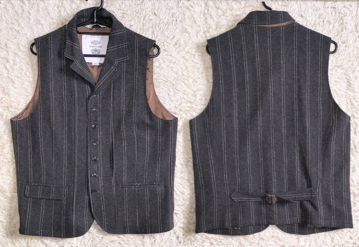 【3点セット★】サイズM+L 美品 WORK NOT WORK ウール ワークジャケット ベスト トラウザーパンツ●グレ-☆ワークノットワーク (10151)