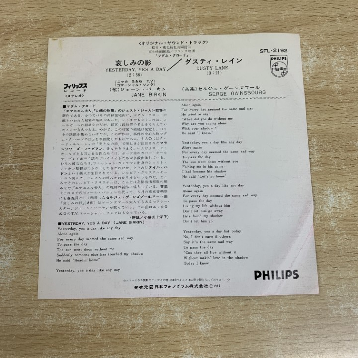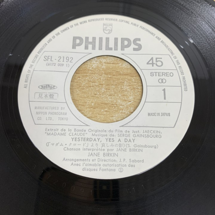 Product name: ●01)【1点限り!】【見本盤】Jane Birkin/Serge Gainsbourg/Madame Claude/ジェーンバーキン/EPレコード/7インチ/SFL-2192/A