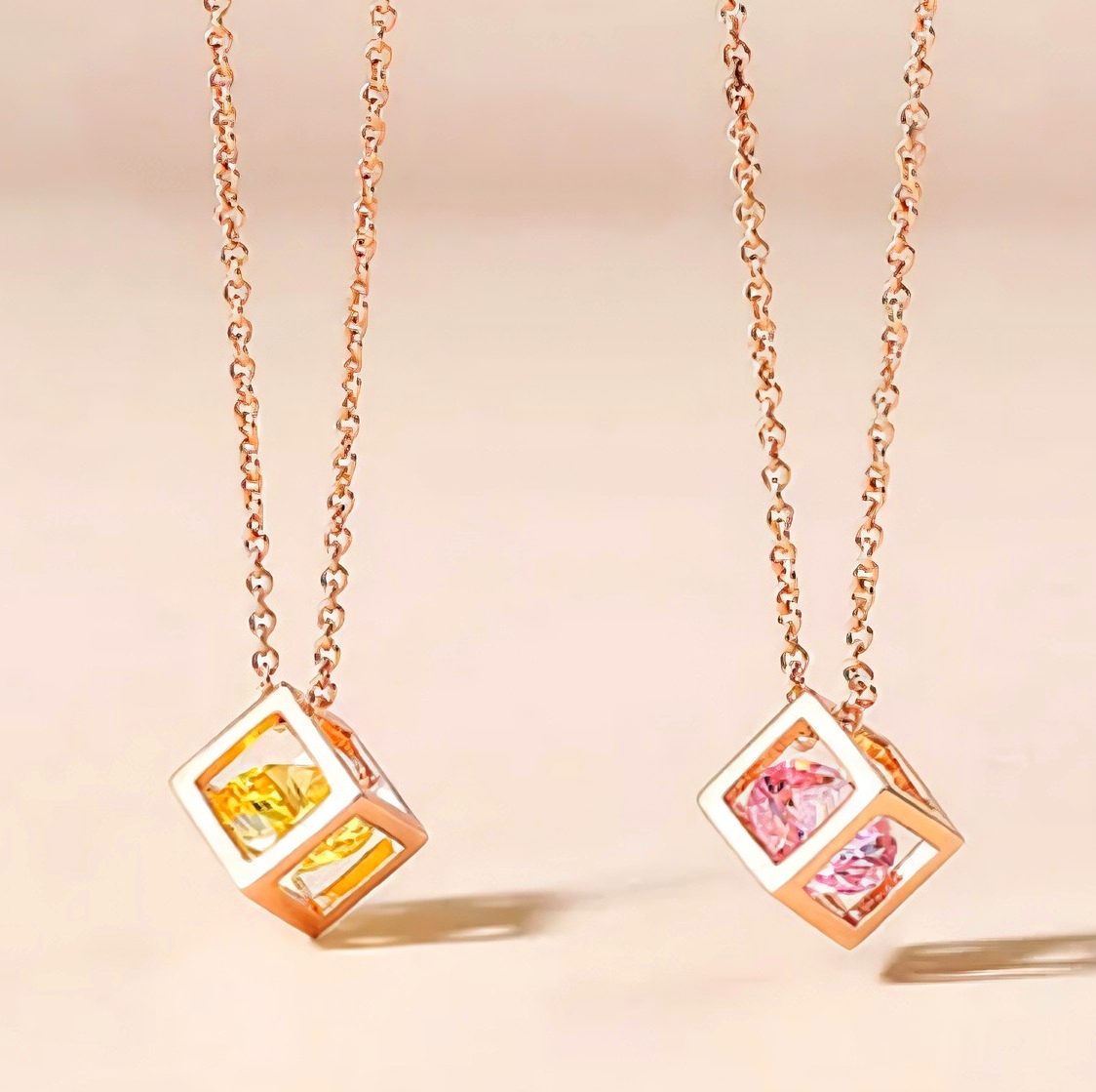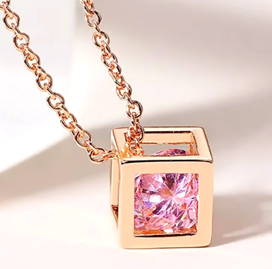こちら万華鏡のような輝きが美しいキューブK18RGローズゴールドネックレスとなります。