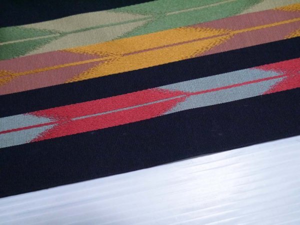 半幅帯/黒地/矢羽根柄・縞柄