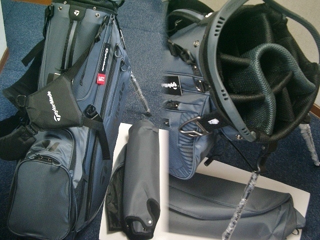 未使用 テーラーメイド アスリート向け ラウンド取っ手付 合繊素材 希少カラー グレー黒 スタンドバッグ
