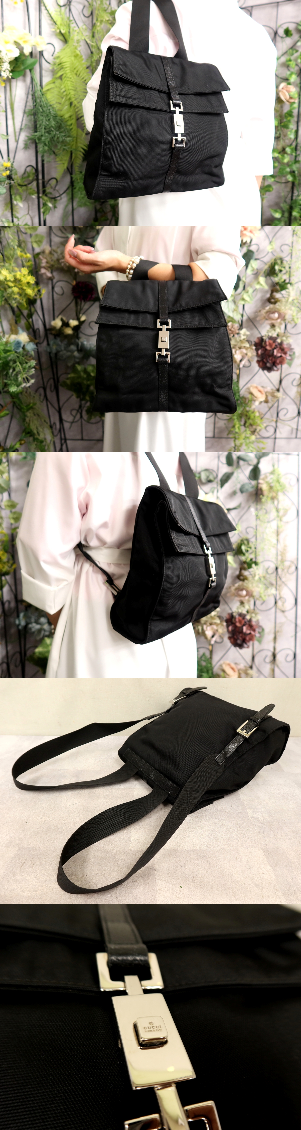 Product name: ●超美品●GUCCI グッチ●ジャッキー●キャンバス カーフ レザー 本革●リュックサック●黒●シルバー金具●イタリア製●かばん●Js61330