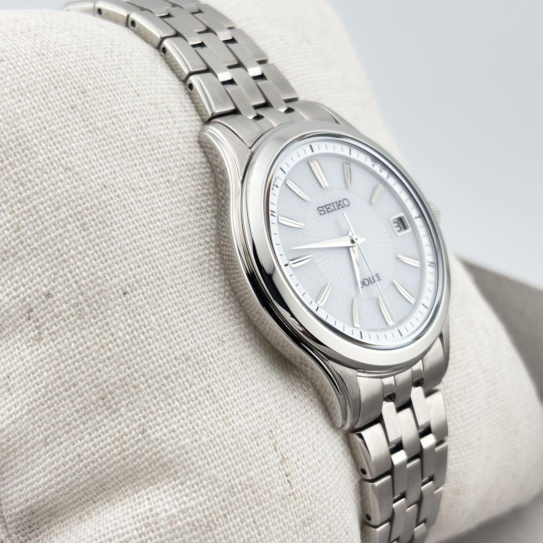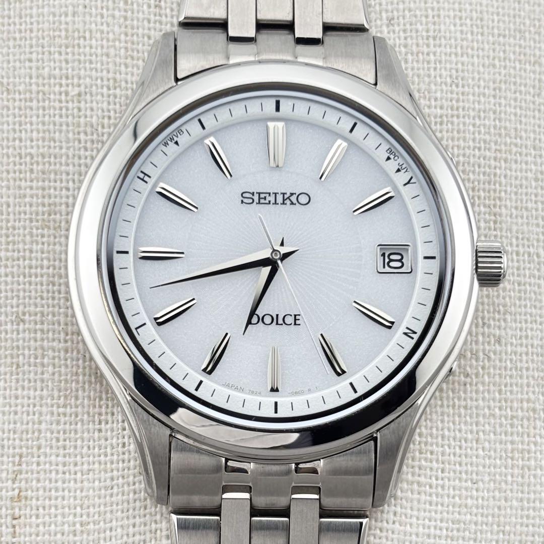 極美品 SEIKO DOLCE セイコー ドルチェ SADZ123 / 7B24-0AV0 デイト ホワイト文字盤 メンズ クォーツ 電波ソーラー 腕時計