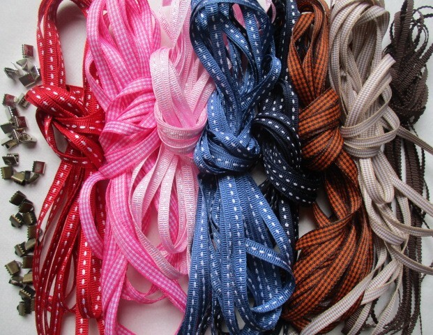 Product name: R58◆3~6ミリ幅リボン・8種-各400cm・チョーカー金具 32個