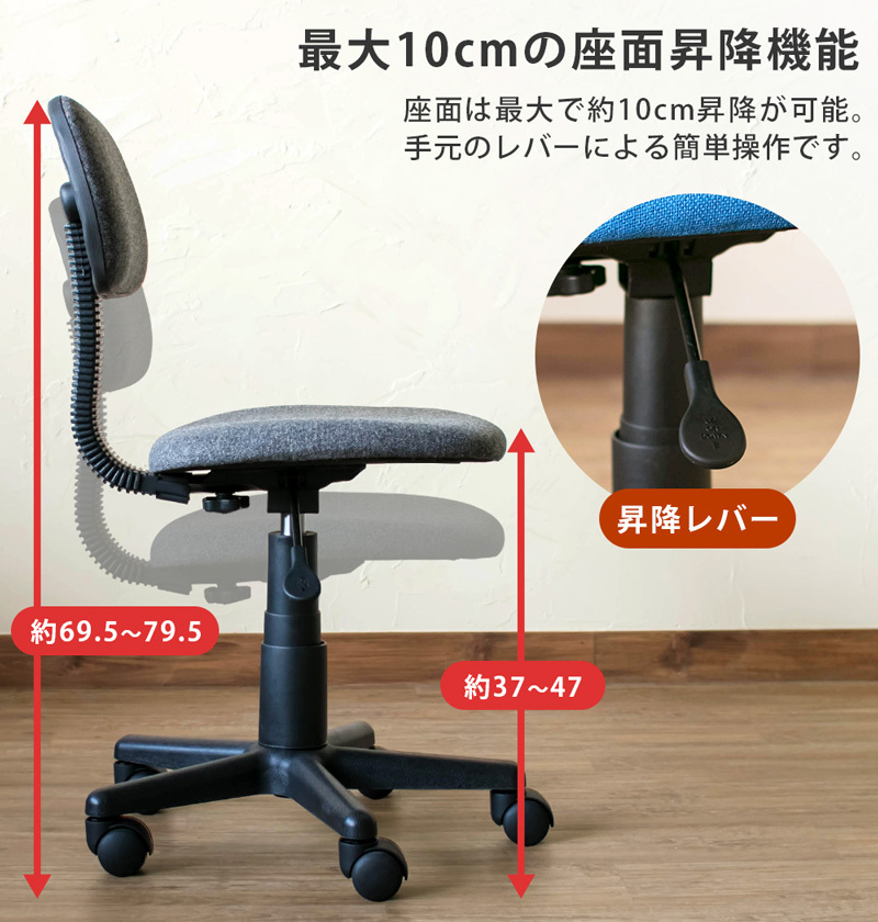 (W)幅53×(D)奥行52×(H)高69.5~79.5cm  座面・背もたれ厚:約35mm