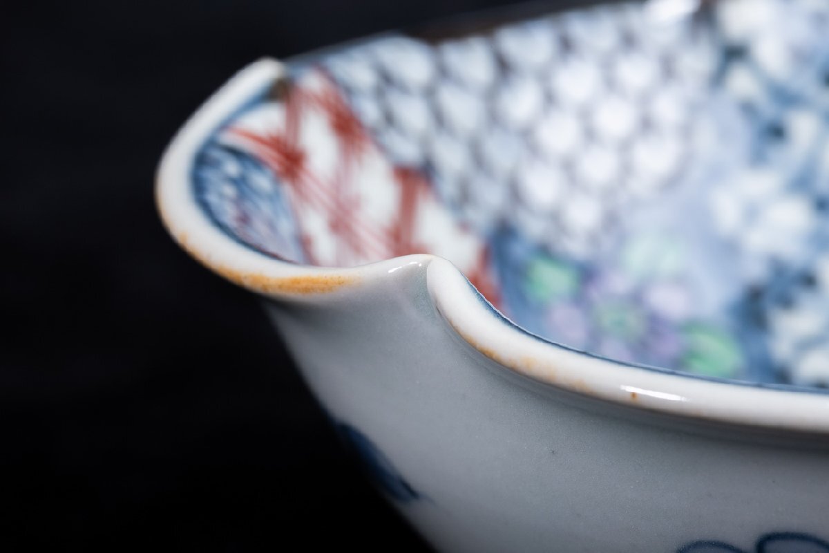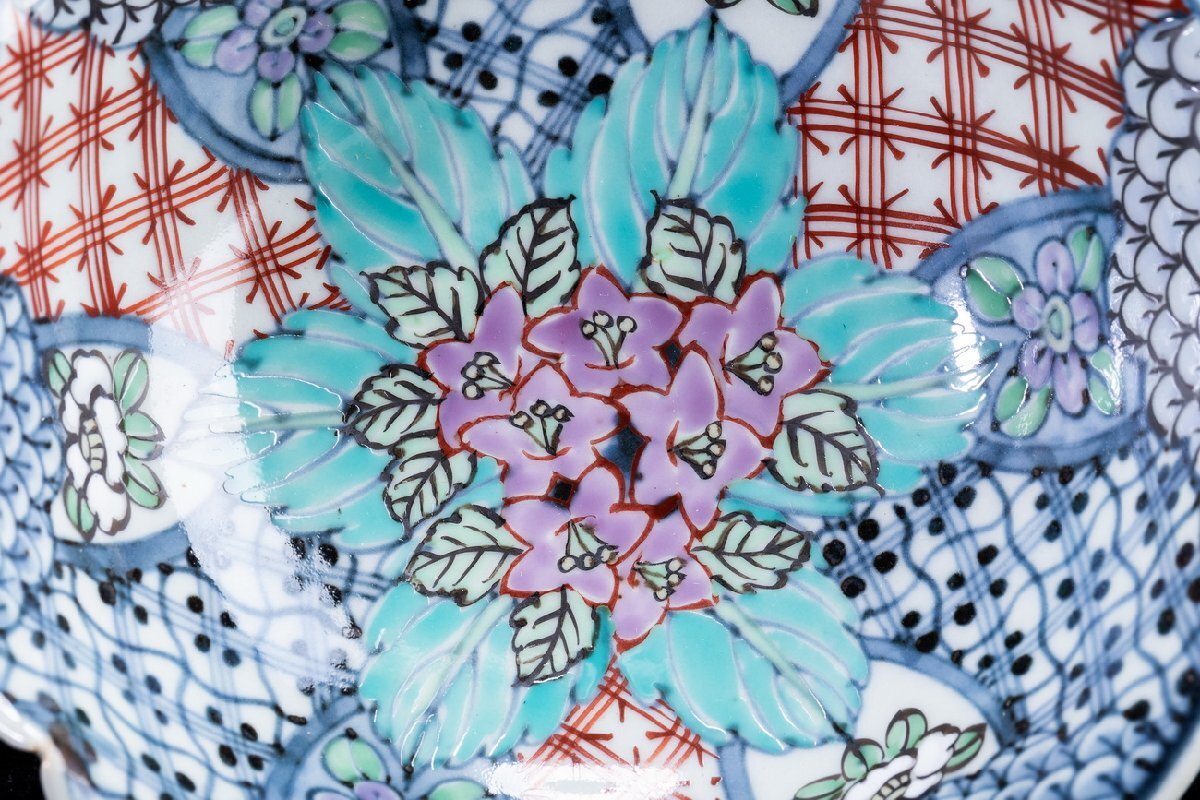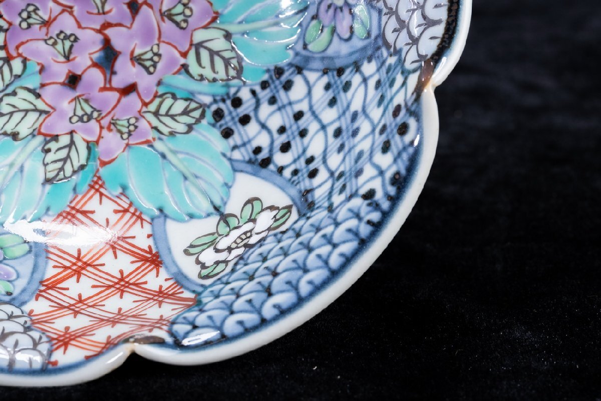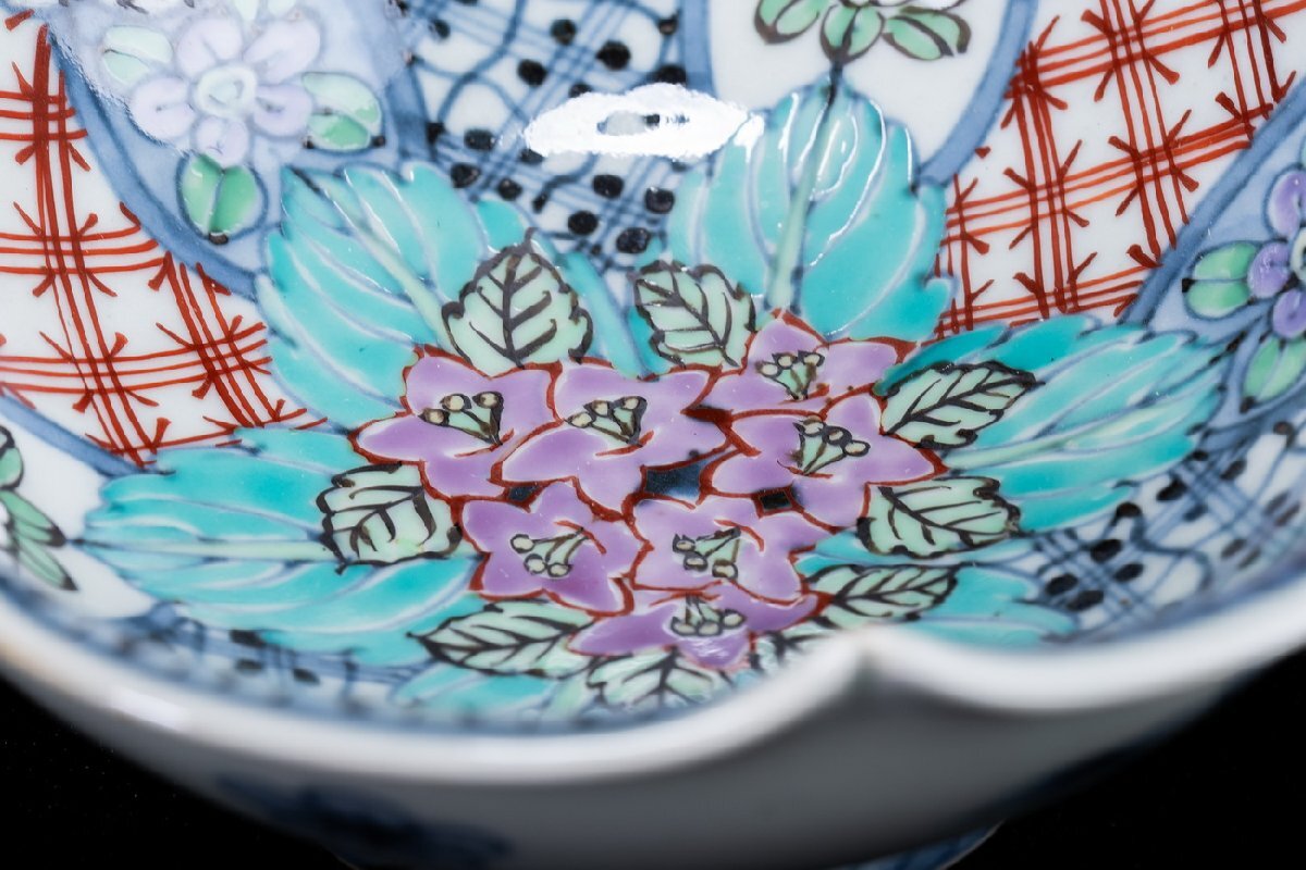 Product name: 【珍品堂】1円から P21-V04 有田焼 走波作 佐藤走波 六代 染錦 紫陽花文 輪花 鉢 深皿 在銘 共箱 木箱 名工 名窯 骨董品 古美術 時代物 和