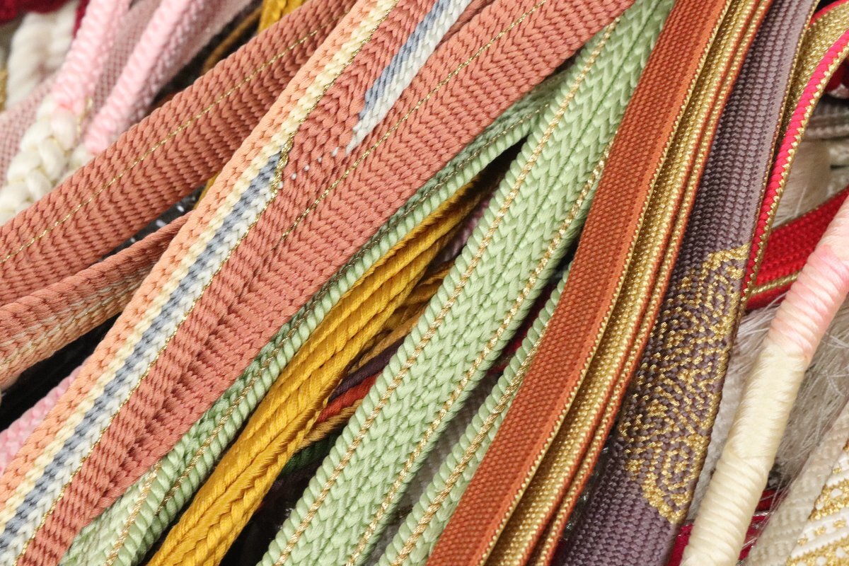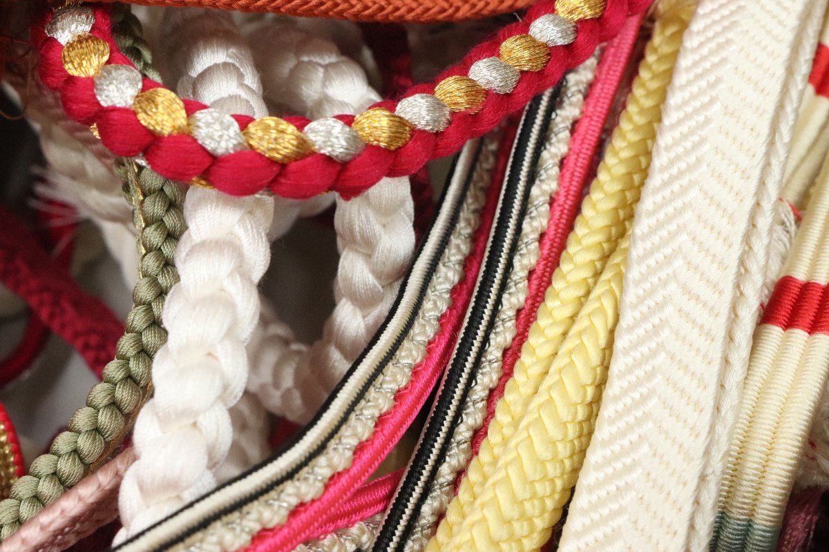 化繊や交織のものもあるかもしれませんが、ほとんどが正絹の帯締めです。
