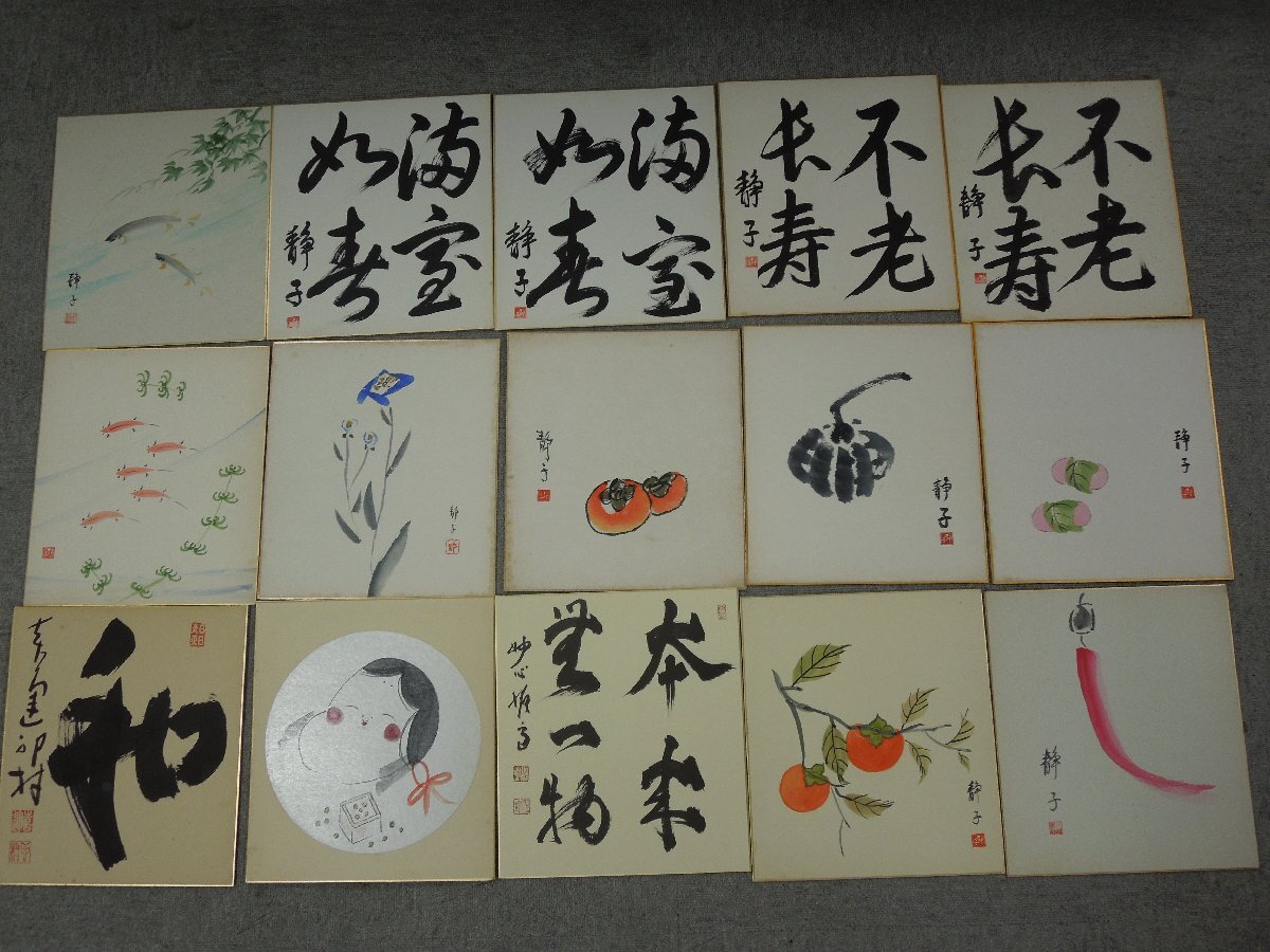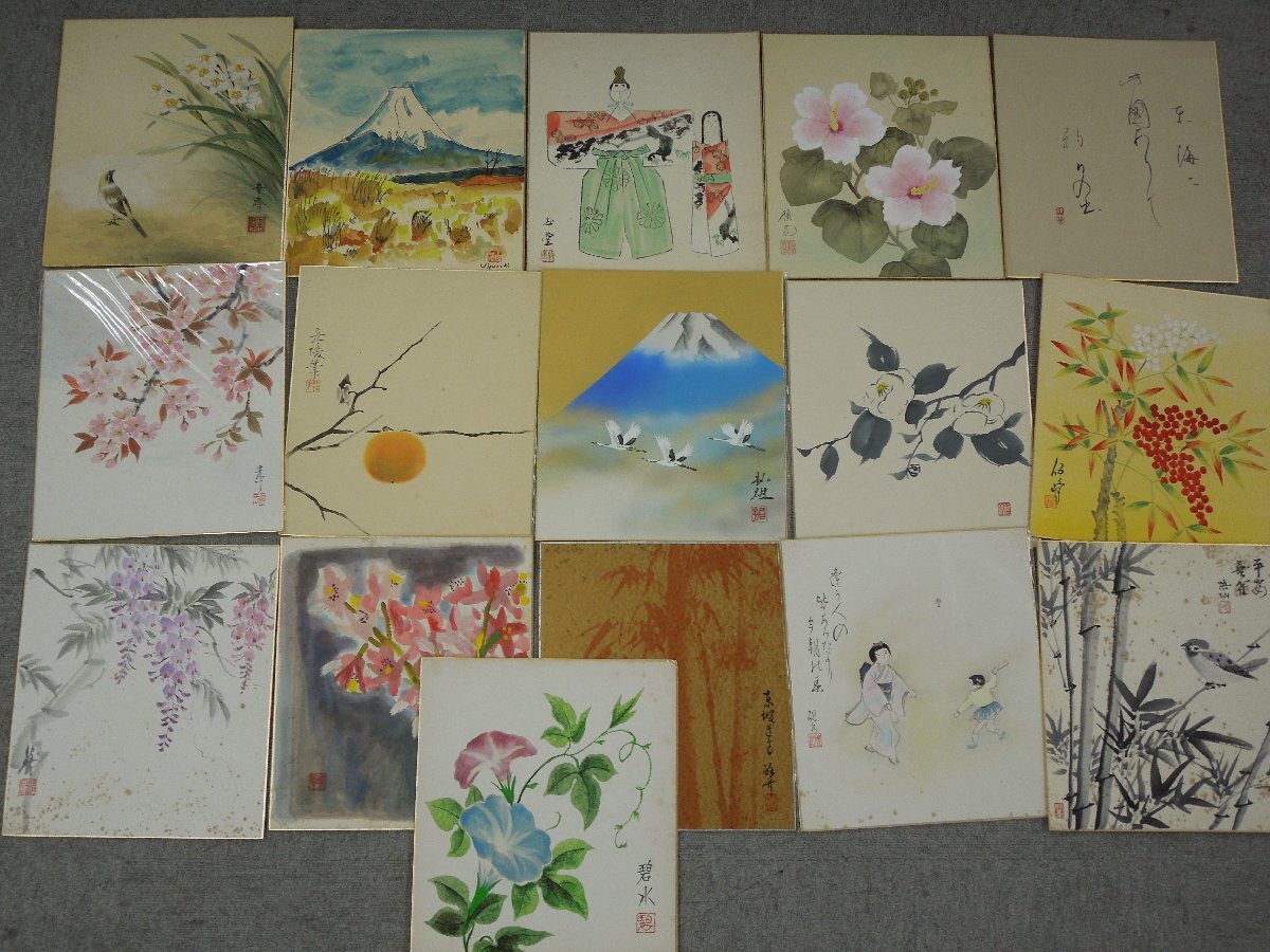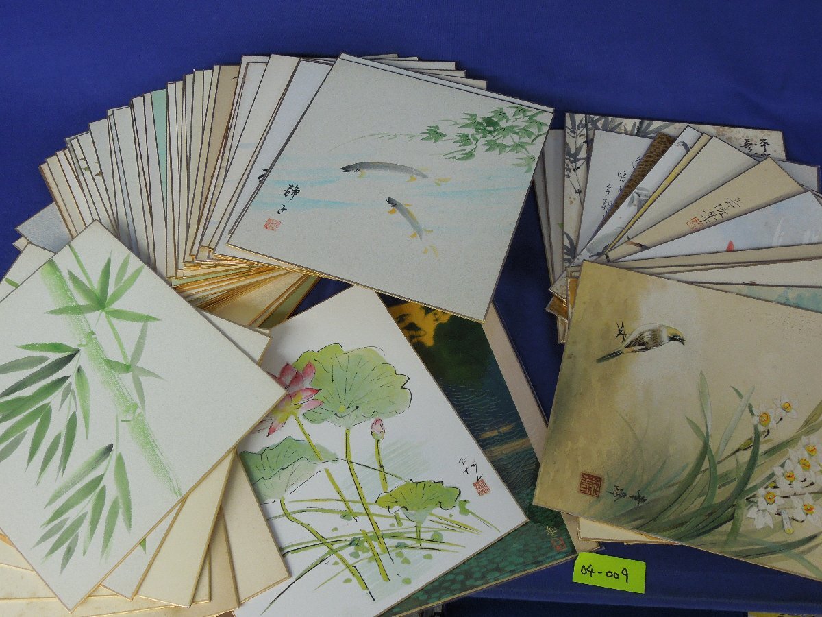 Product name: ★04―009★色紙 大量 64点まとめ(2点印刷物) 水彩画 書 水墨画 風景画 静物画 茶室飾り 絵画 花鳥 富士山 在銘 署名 作品 [80]