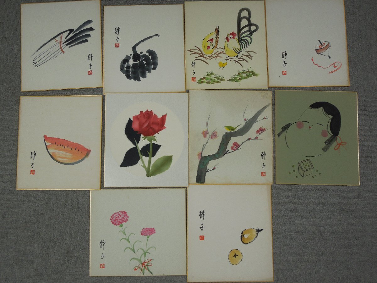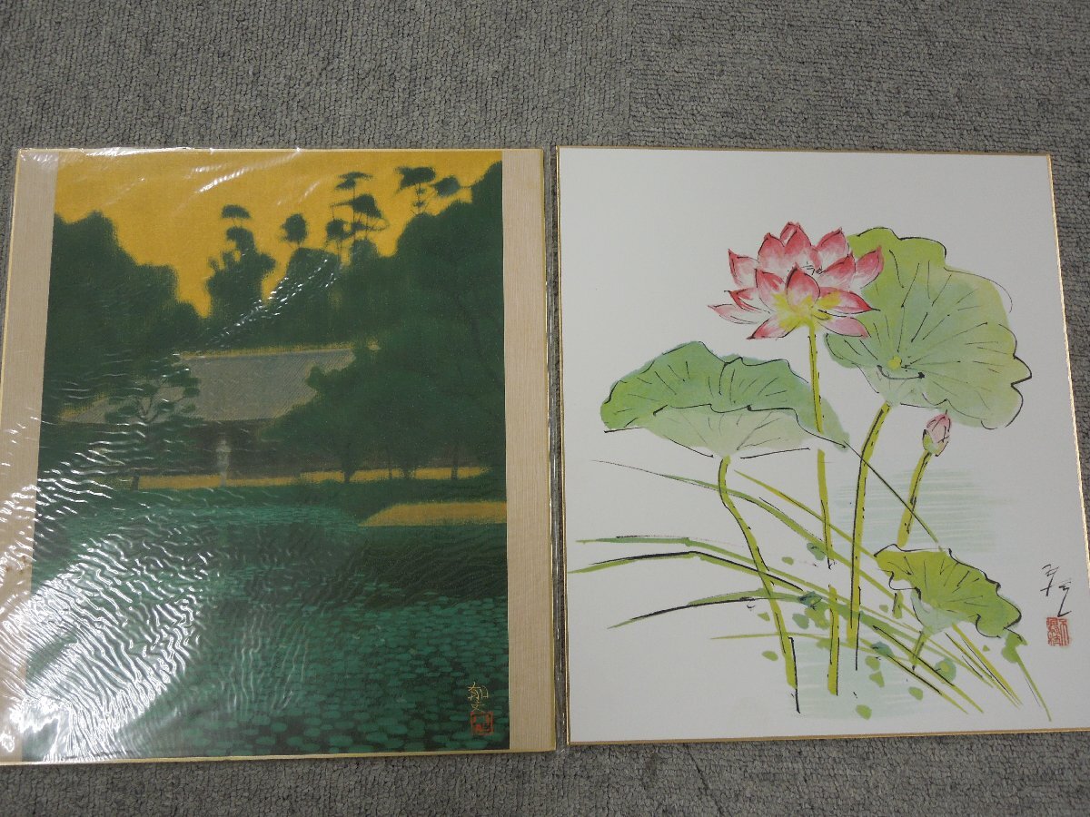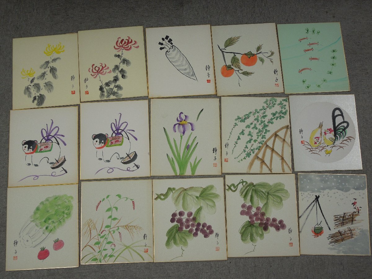 Product name: ★04―009★色紙 大量 64点まとめ(2点印刷物) 水彩画 書 水墨画 風景画 静物画 茶室飾り 絵画 花鳥 富士山 在銘 署名 作品 [80]