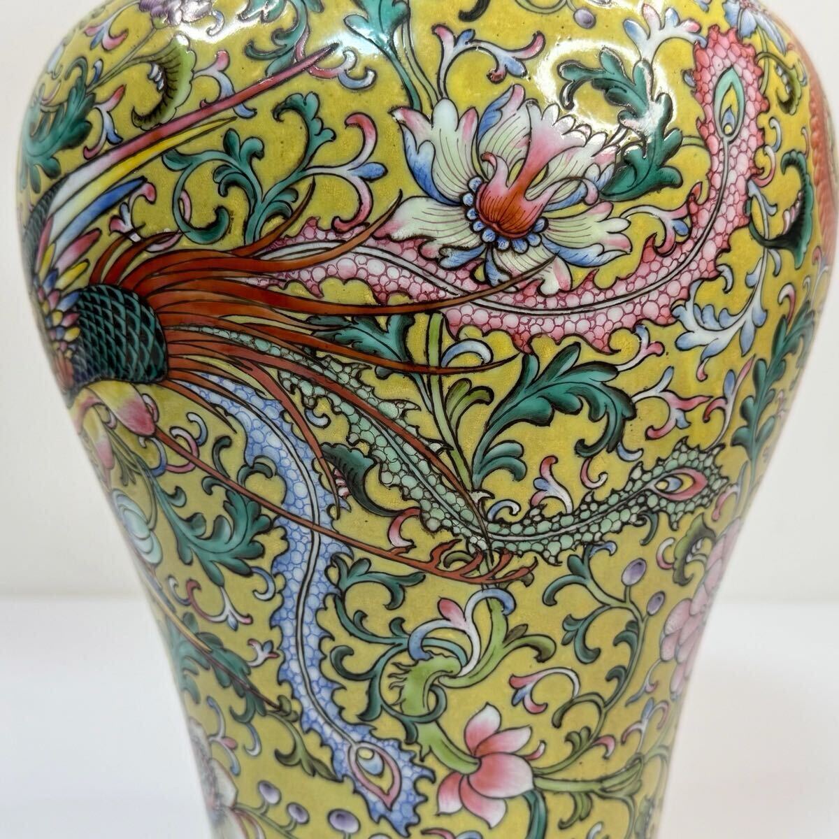 XMF-中国古美術 時代物 花瓶 花器 花入 梅瓶 色絵 粉彩 洋彩?龍鳳凰図 在銘 大清雍正年製 唐物 陶磁器 骨董品 幅22.4cm 高さ34.5cm