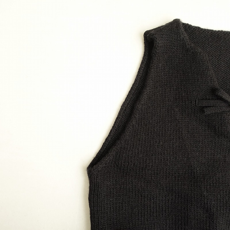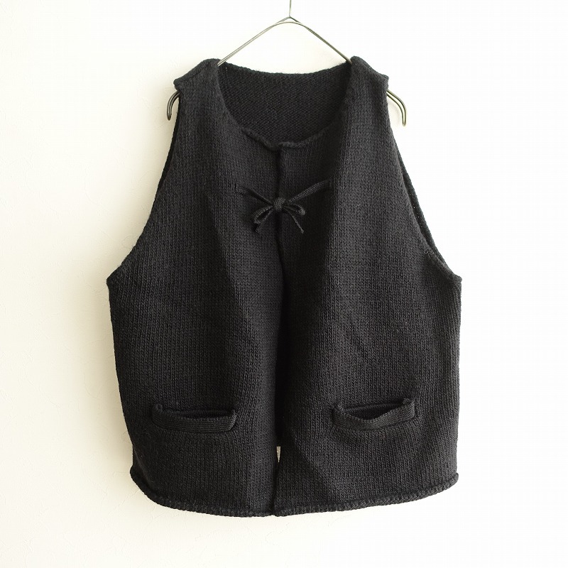 2024年コレクション JOURNAL STANDARD LUXEのウールニットベストです。カラーはブラックで、粗目のニット地です。胸元のニット紐を結んで着用でき、前腰左右にポケットがございます。