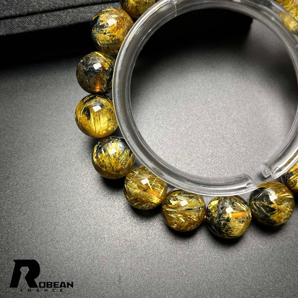 希少EU製 定価102万円★ROBEAN・太陽花タイチンルチル★黄金針水晶 金運 開運 ゴールド ブレスレット パワーストーン 12.8-13.6mm D0606394