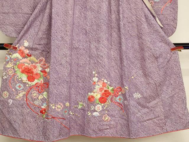 平和屋着物[]七五三 女の子 7歳 祝着 四つ身 総絞り 駒刺繍 扇面花文 金銀糸 正絹 逸品 AAAY2472ja