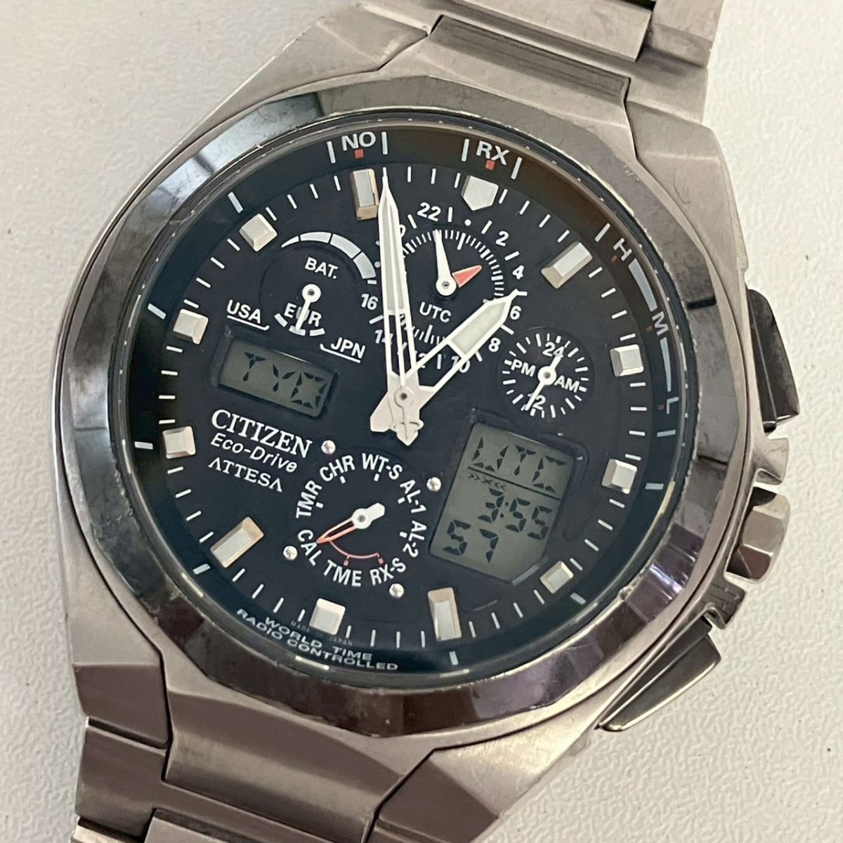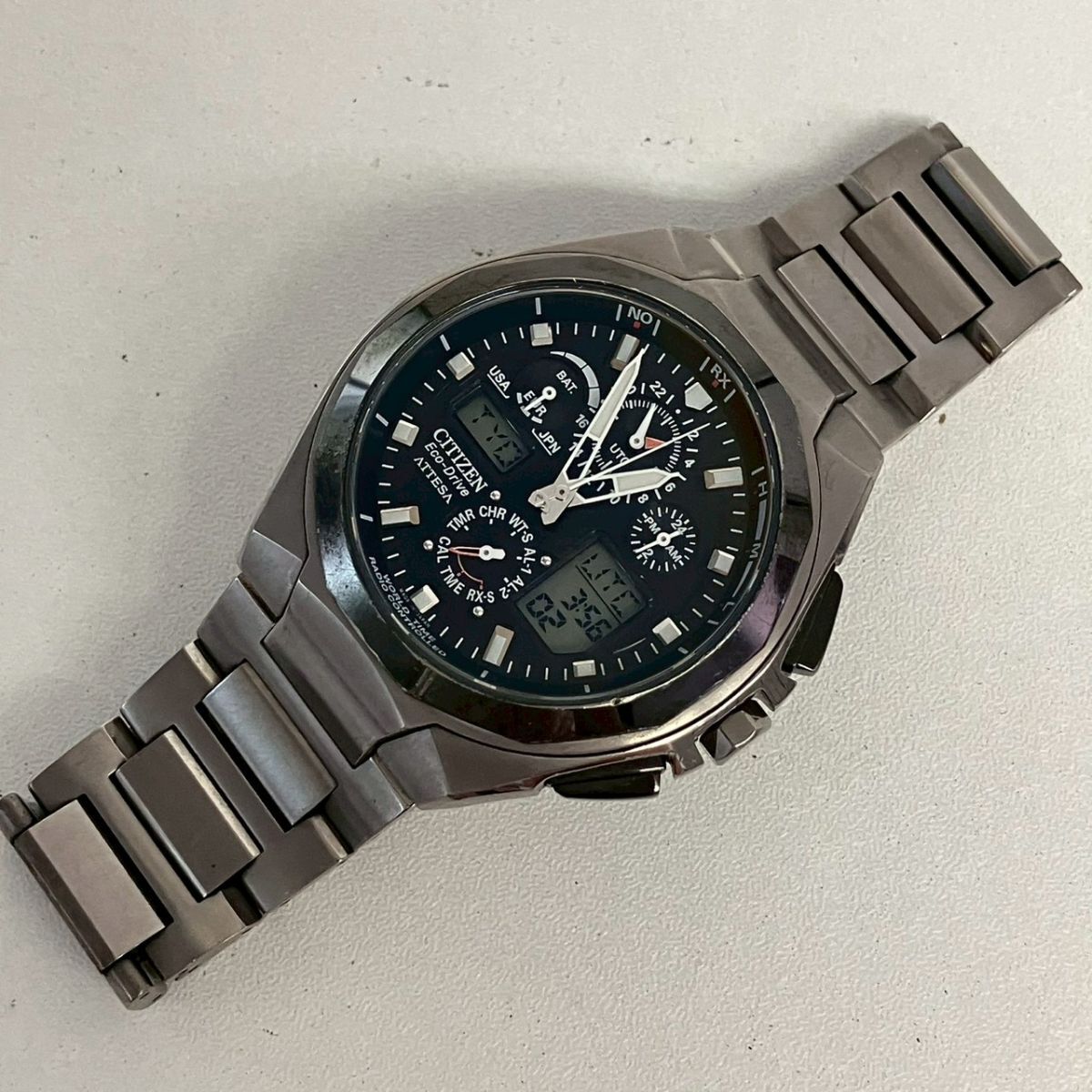 T028-SG3-1784◎ CITIZEN シチズン メンズ腕時計 ATTESA アテッサ U600-7011497 Eco-Drive アナデジ クロノグラフ ラウンド 稼働 KA