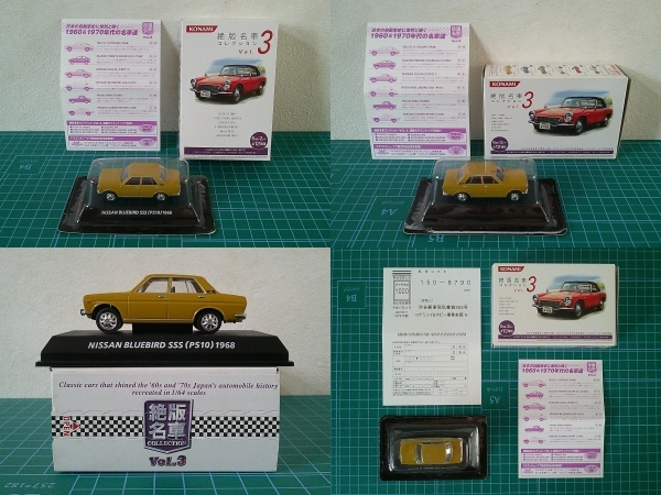 1/64 KONAMI 絶版名車コレクションVol.3 NISSAN BLUEBIRD SSS (P510型) 1968 コナミ 日産 ブルーバード ブラウン ダイキャスト製 未展示