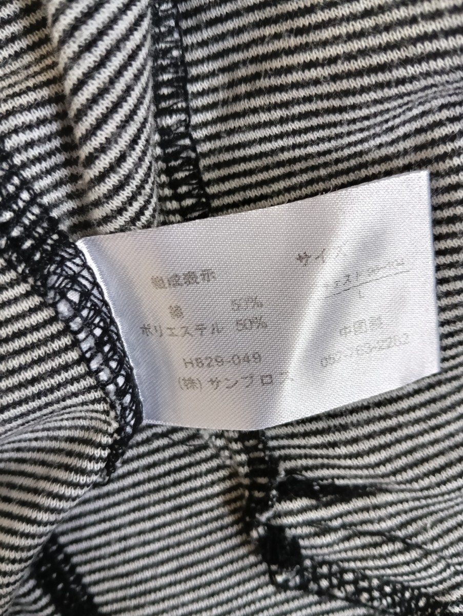 2.サンプロス社・・表記サイズ<Lーチェスト96~104>着丈65cmくらい グレー黒