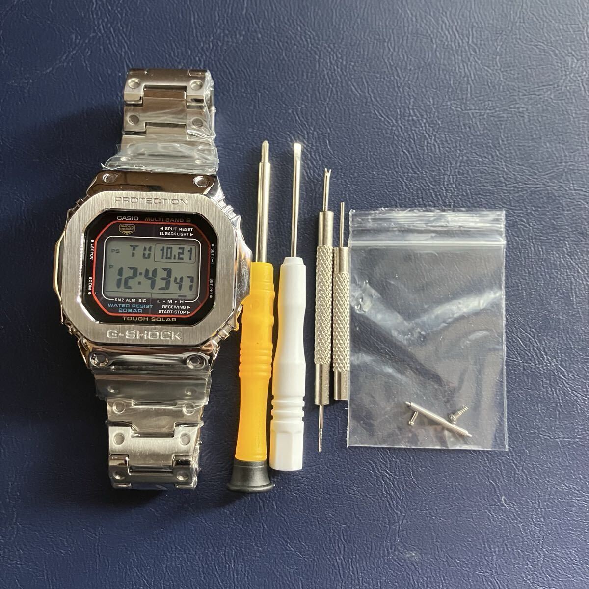 稼働 新品 G-SHOCK GW-M5610 電波ソーラー シルバーフルメタルカスタム ステンレス