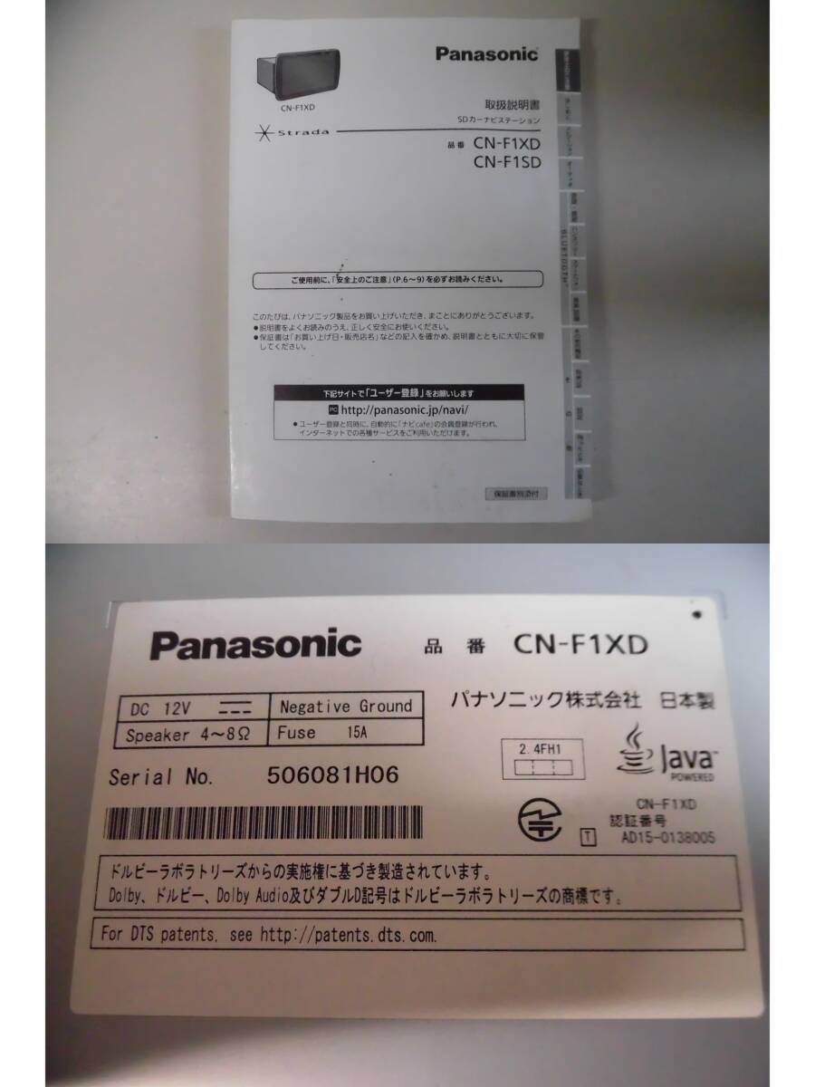Product name: N3413 パナソニック【Panasonic】ストラーダ SDナビ CN-F1XD 中古品