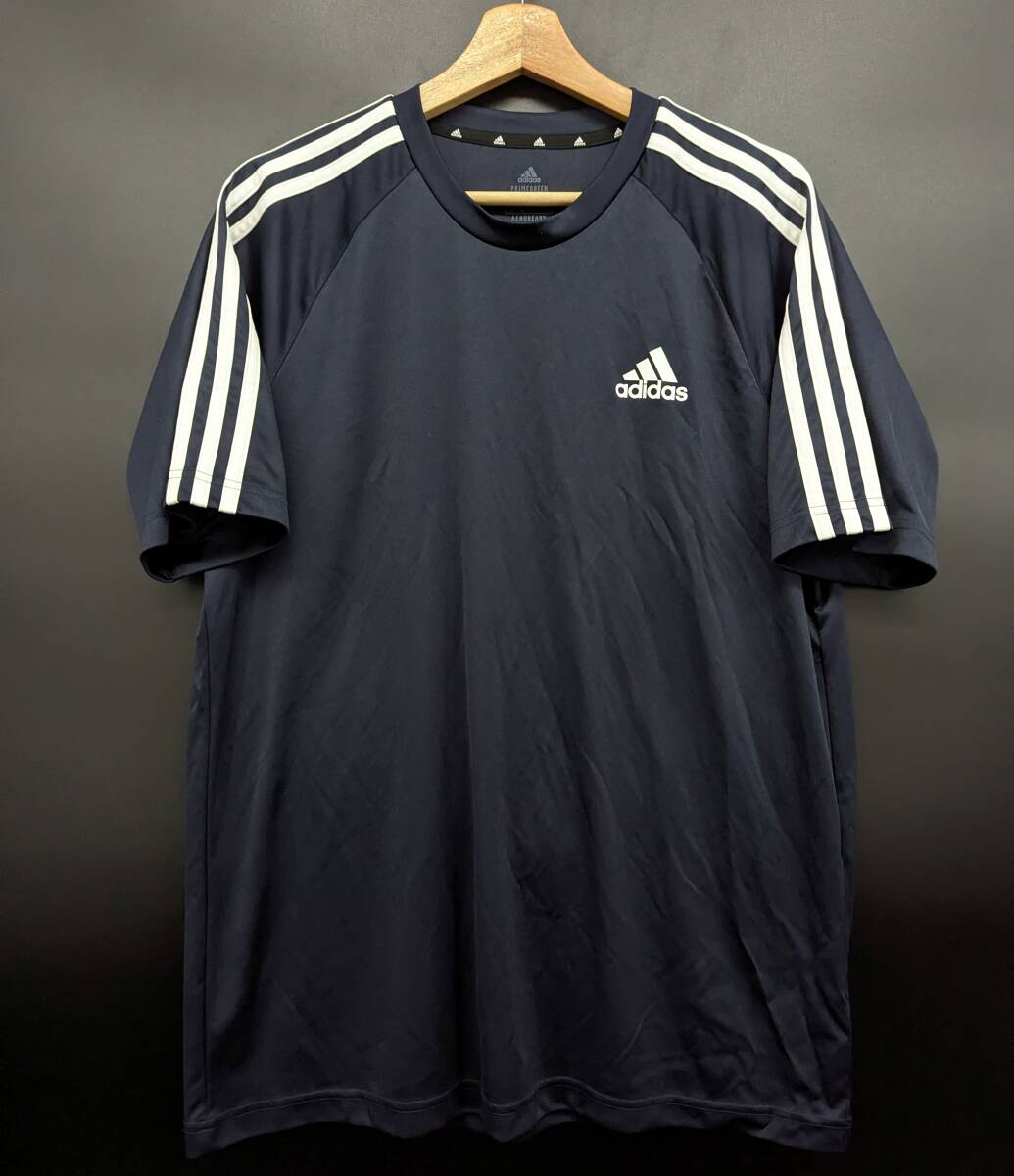 Product name: 4757C 送料185円♪ ADIDAS アディダス AEROREADY ネイビーxホワイト 3本ライン 速乾生地 半袖 スポーツ Tシャツ O(LL)