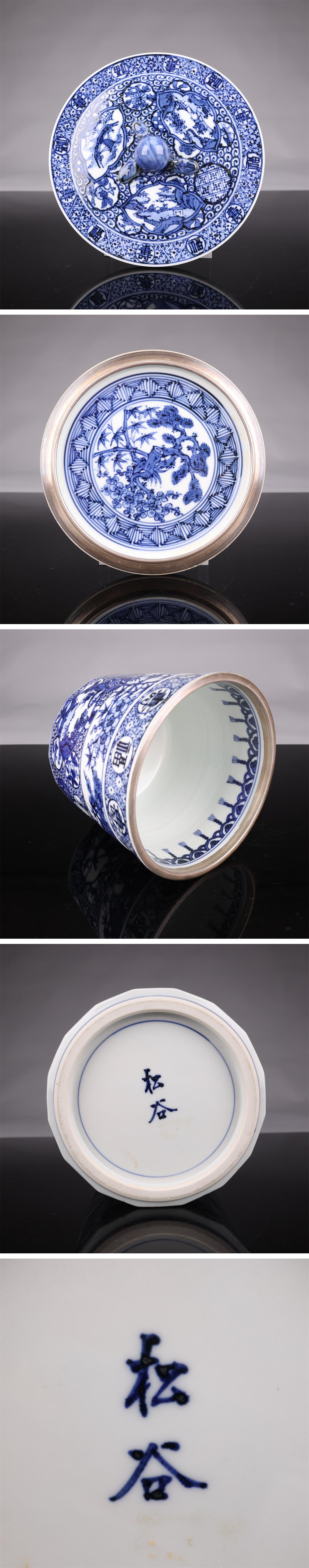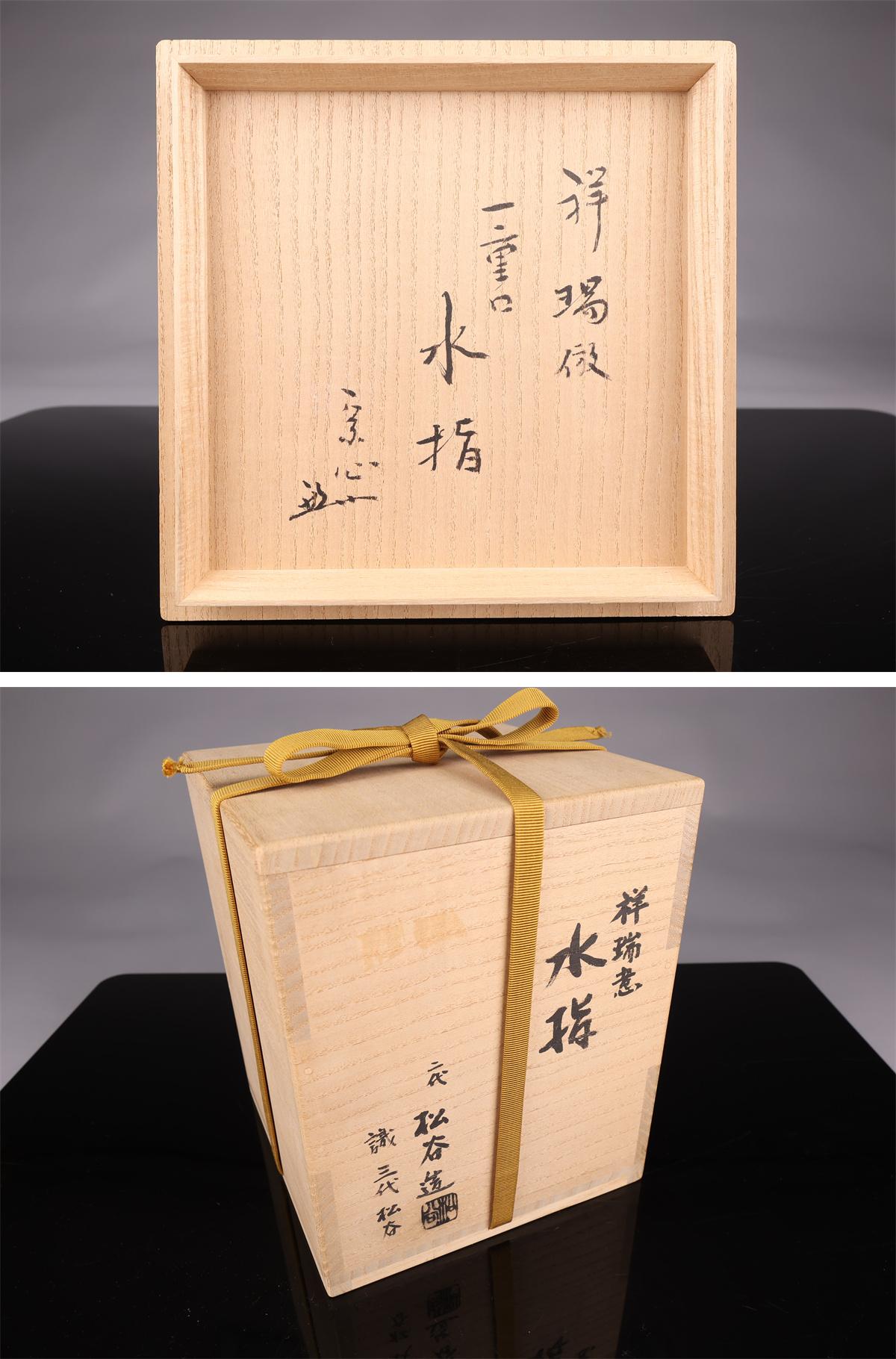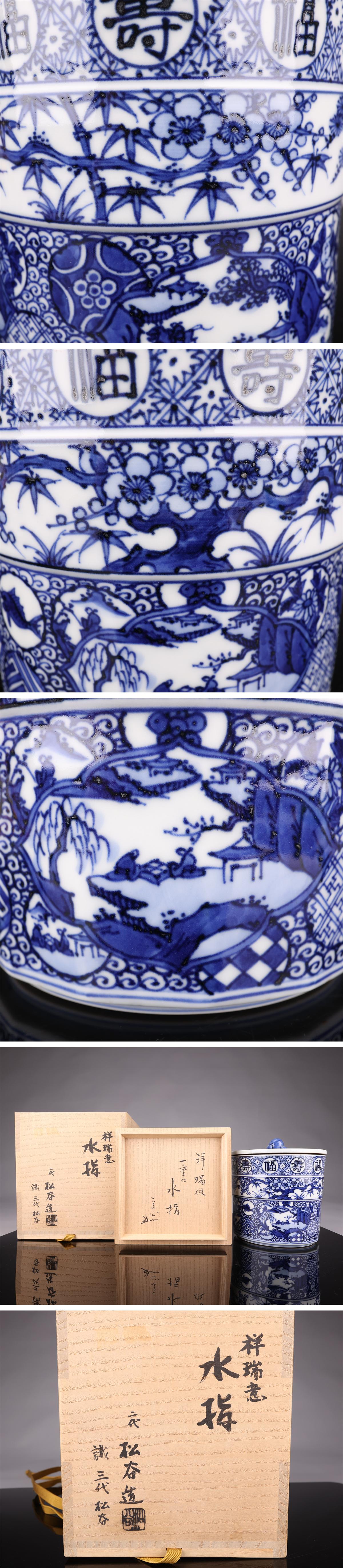 Product name: 【志】A428 京焼名工 【二代 京焼 叶松谷】作 染付祥端意 水指/三代叶松谷及び宗心 極書付! #