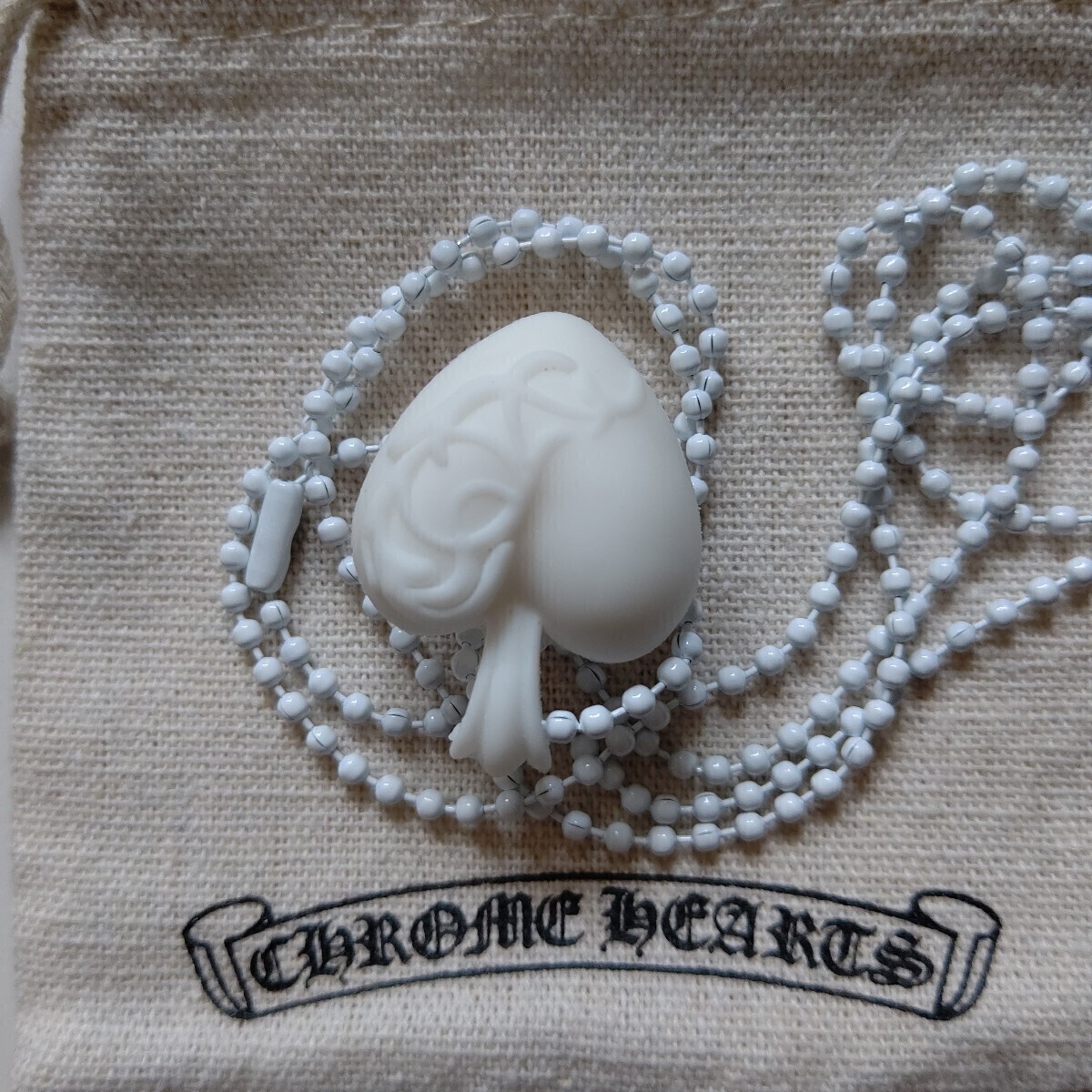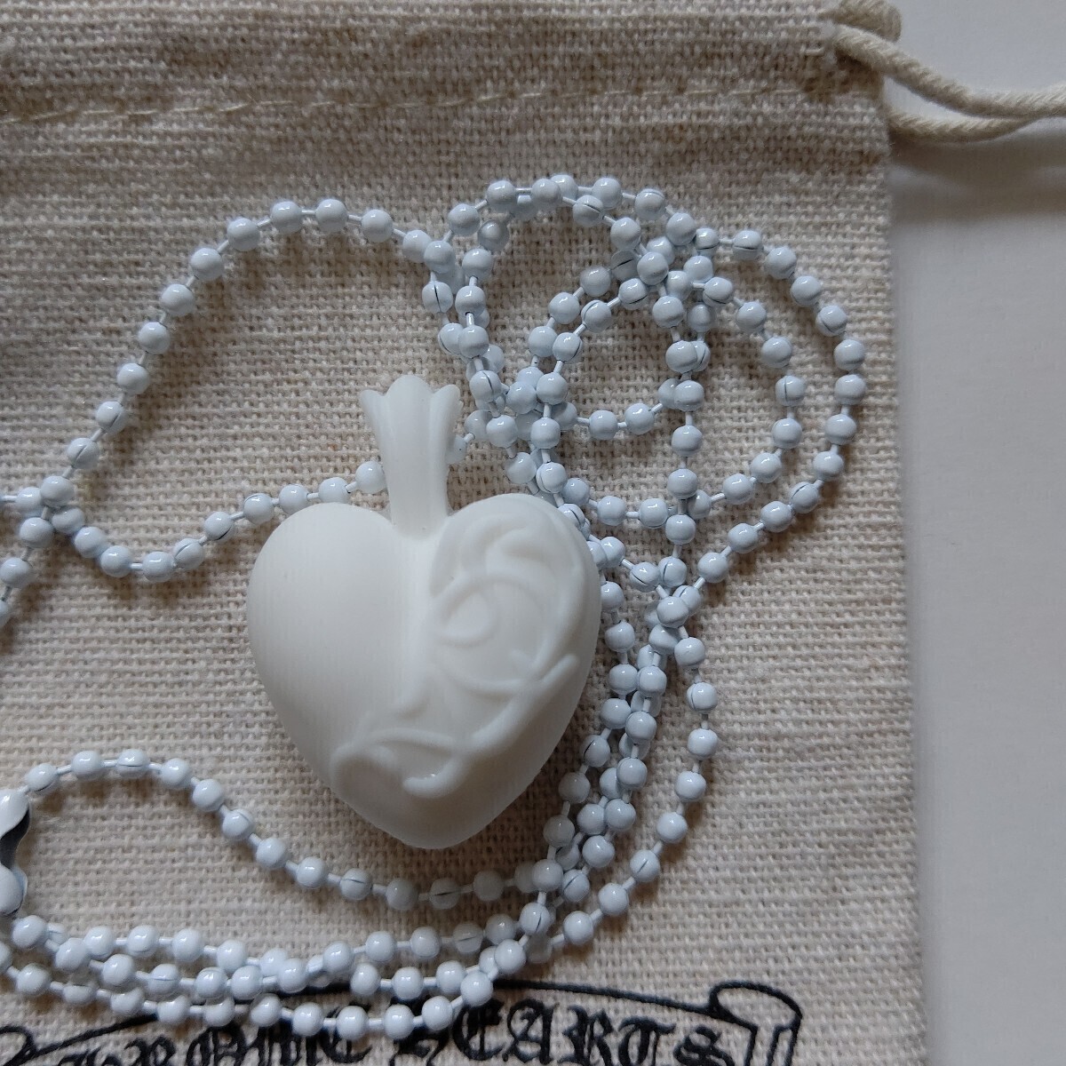 クロムハーツのハートラバーネックレス ホワイトになります。クロムハーツ大阪で購入してから、一度も着用せずに鑑賞用として保管していました。こちらの商品は2023年最新モデルになります。発売されてから即完売した大人気商品です。発売されてから即完売したのでもう手に入りません。即完売した大人気商品をこの機会に如何でしょうか?クロムハーツの大ファンの方、気に入って下さった方、価値が分かる方にお譲りします。