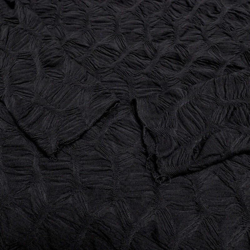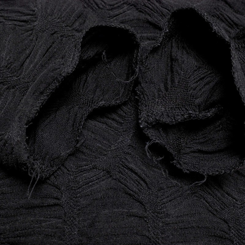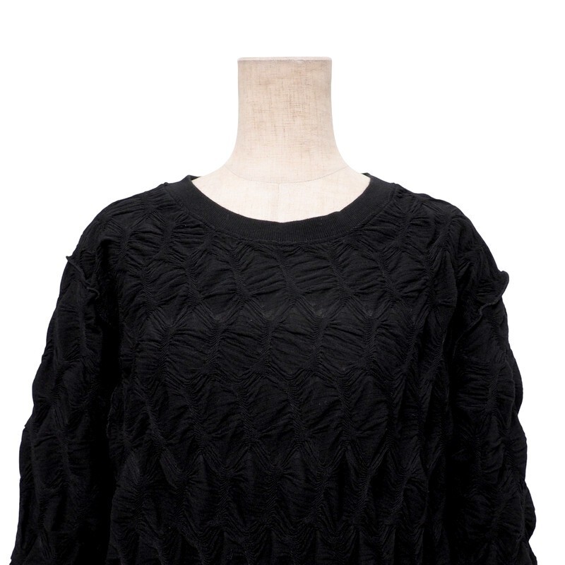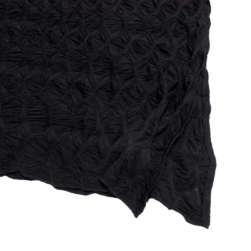 凹凸のある生地でやや透け感がございます。片サイドにスリット入りで、ワイドパンツとあわせて裾を見せてコーディネートさせても可愛いアイテムです。